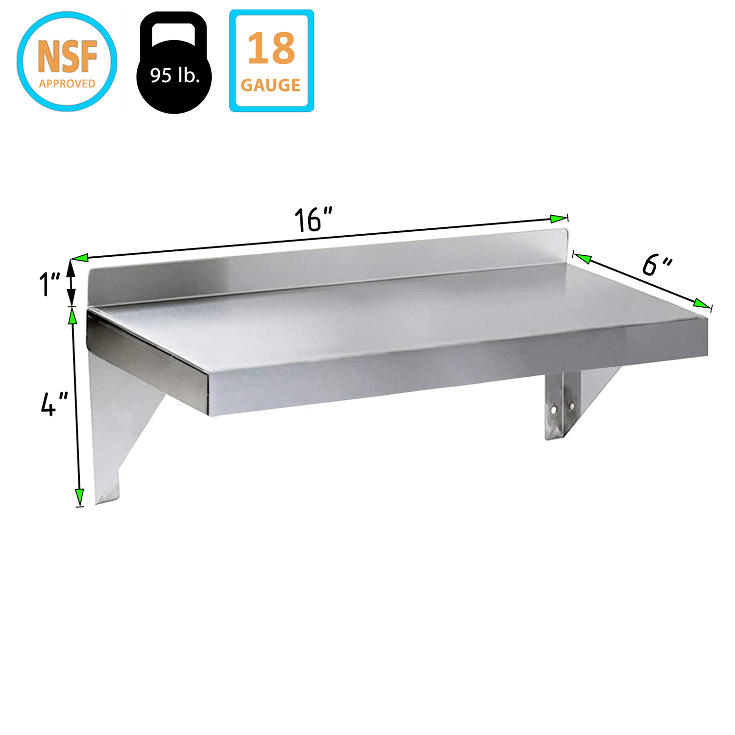 Whether you need extra storage in your home or a reliable shelving option for your business, our 06″ X 16″ Stainless Steel Wall Mount Shelf with Square Edge is the perfect choice. Experience the blend of functionality and style with this durable, easy-to-clean, and aesthetically pleasing shelf, designed to meet your storage needs with elegance and efficiency.