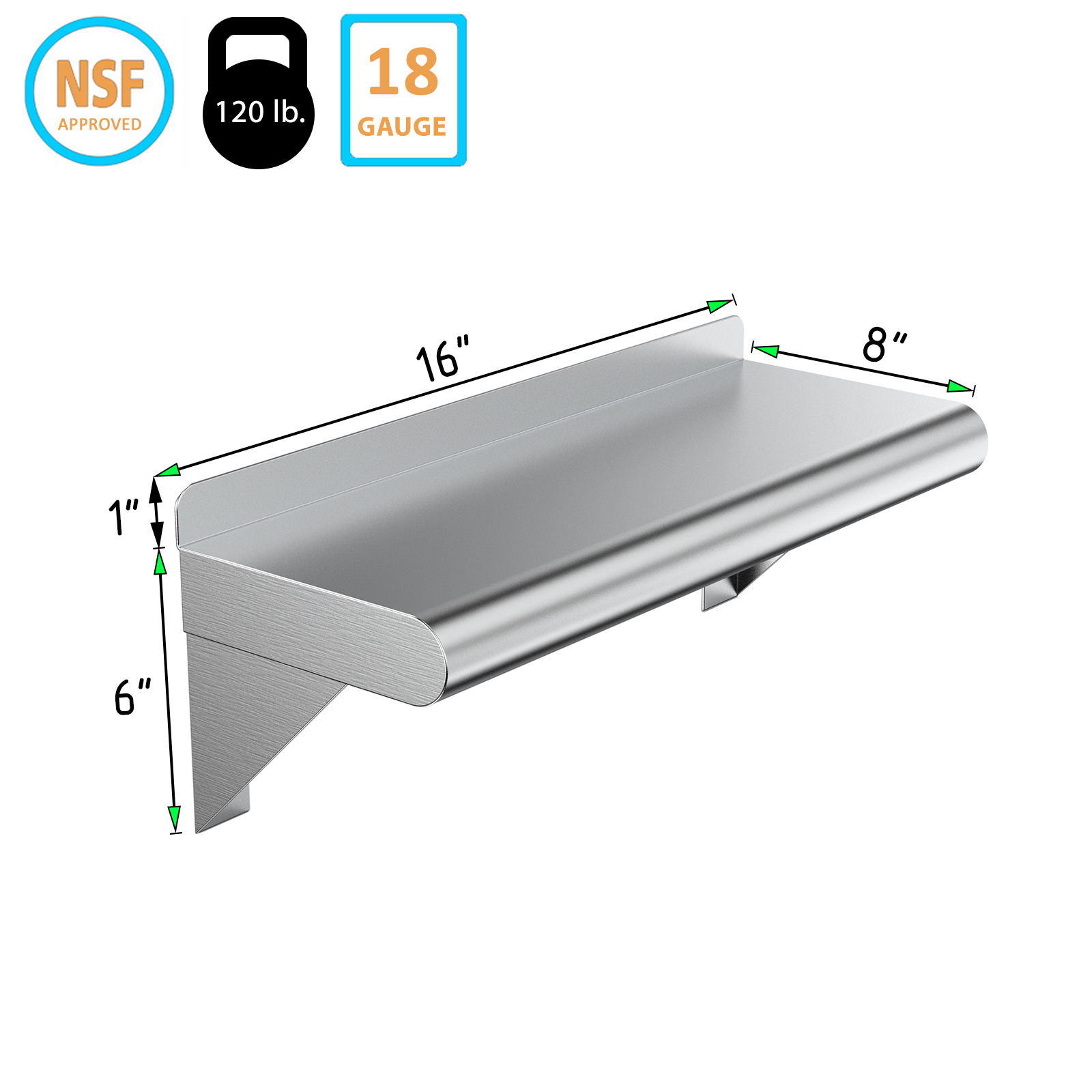 Installation is straightforward with the included mounting hardware, allowing you to securely attach the shelf to any wall surface. The smooth surface is easy to clean, making maintenance a breeze. Whether you need extra storage in your home or a reliable shelving option for your business, our 08″ X 16″ Stainless Steel Wall Mount Shelf is the ideal choice.