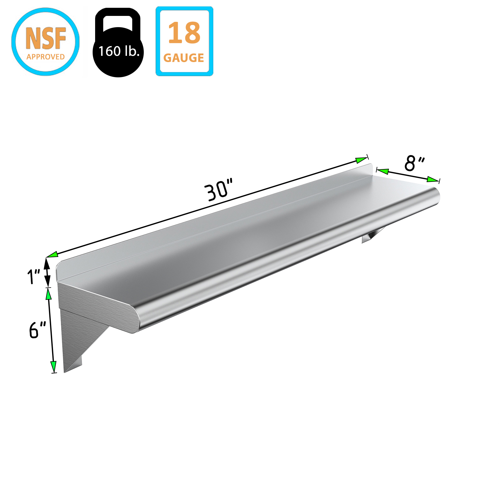 Installation is straightforward with the included mounting hardware, allowing you to securely attach the shelf to any wall surface. The smooth surface is easy to clean, making maintenance a breeze. Whether you need extra storage in your home or a reliable shelving option for your business, our 08″ X 30″ Stainless Steel Wall Mount Shelf is the ideal choice.