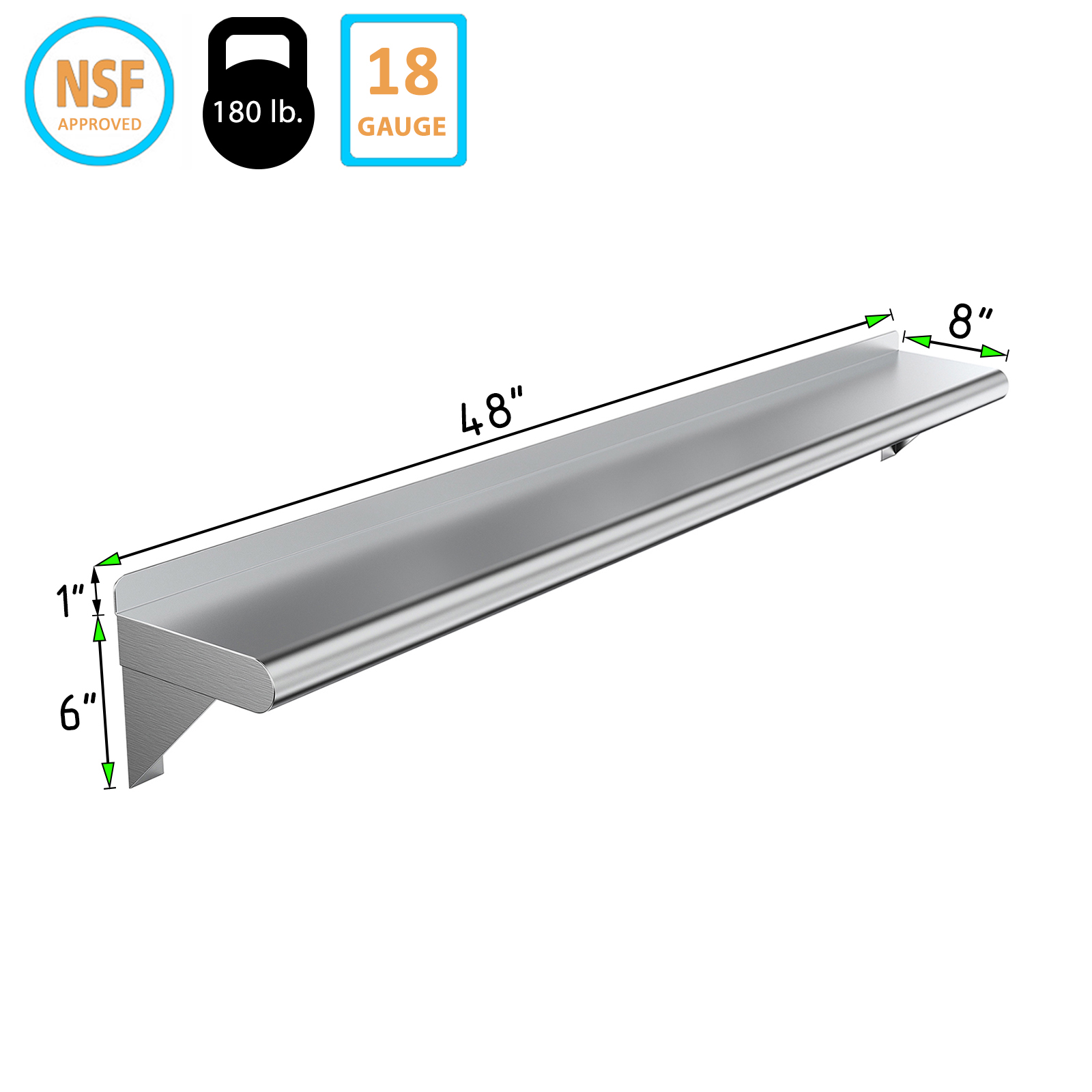 Installation is straightforward with the included mounting hardware, allowing you to securely attach the shelf to any wall surface. The smooth surface is easy to clean, making maintenance a breeze. Whether you need extra storage in your home or a reliable shelving option for your business, our 08″ X 48″ Stainless Steel Wall Mount Shelf is the ideal choice.