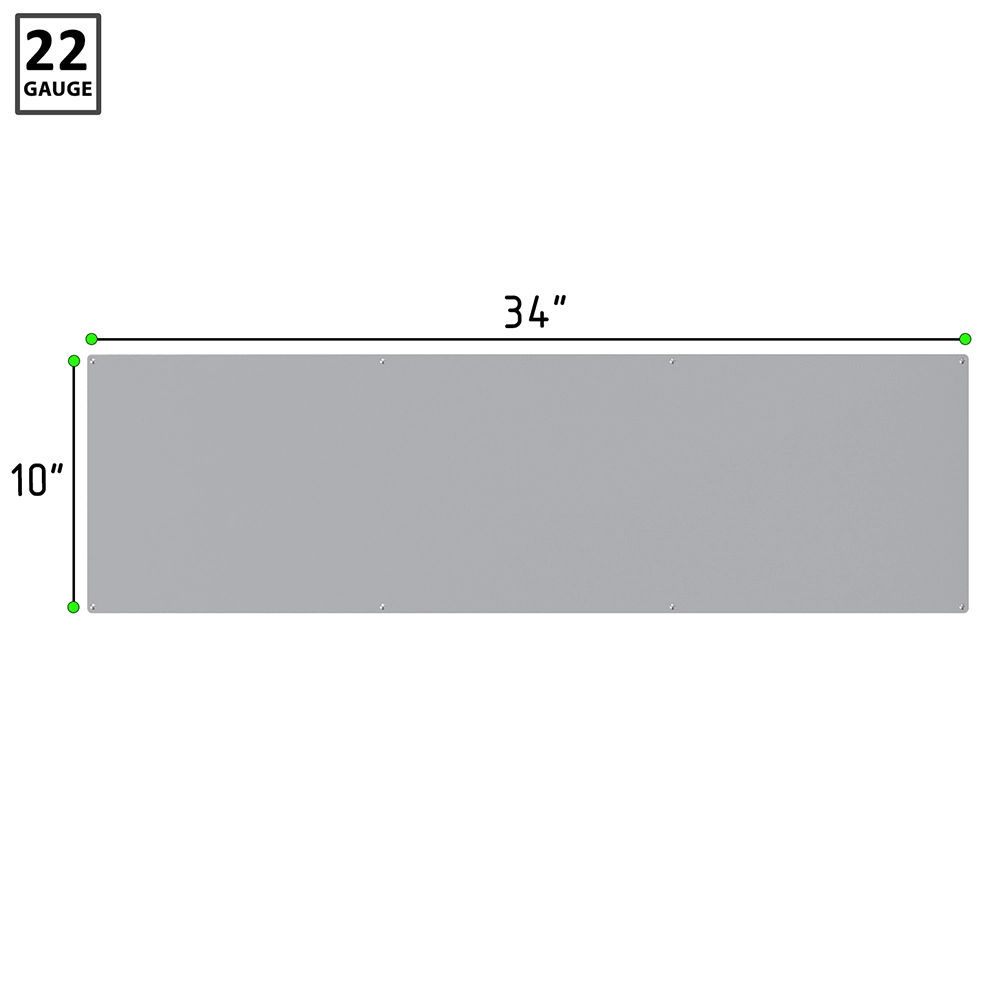 Designed to be mounted at the bottom of doors, the 10 in. height provides ample coverage against damage from foot traffic, carts, equipment, and cleaning tools. The 34 in. width fits most standard doors and is suitable for wood, metal, or composite surfaces. Its smooth finish is easy to clean and sanitize, making it ideal for use in hospitals, restaurants, offices, schools, and other public facilities.