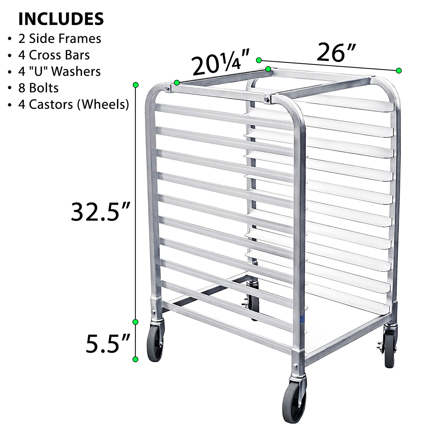Introducing the 10 Sheet Pan Rack Heavy Duty With Wheels, the ultimate solution for enhancing efficiency and organization in any commercial kitchen. Designed to accommodate up to 10 sheet pans, this rack is perfect for bakeries, restaurants, and catering services, providing ample storage and easy access to your baking and cooking sheets.