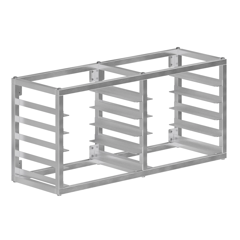Each tier is designed to securely support a half-size sheet pan, providing stability and durability even during heavy use. The robust construction resists bending and ensures long-lasting performance, making it suitable for high-volume operations. The compact dimensions allow it to fit seamlessly into a variety of kitchen layouts without overwhelming the space.