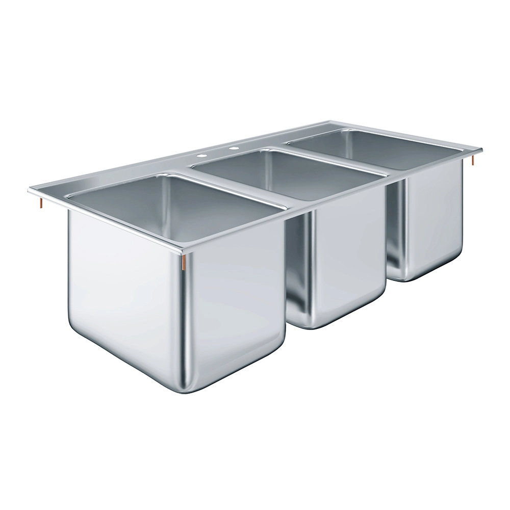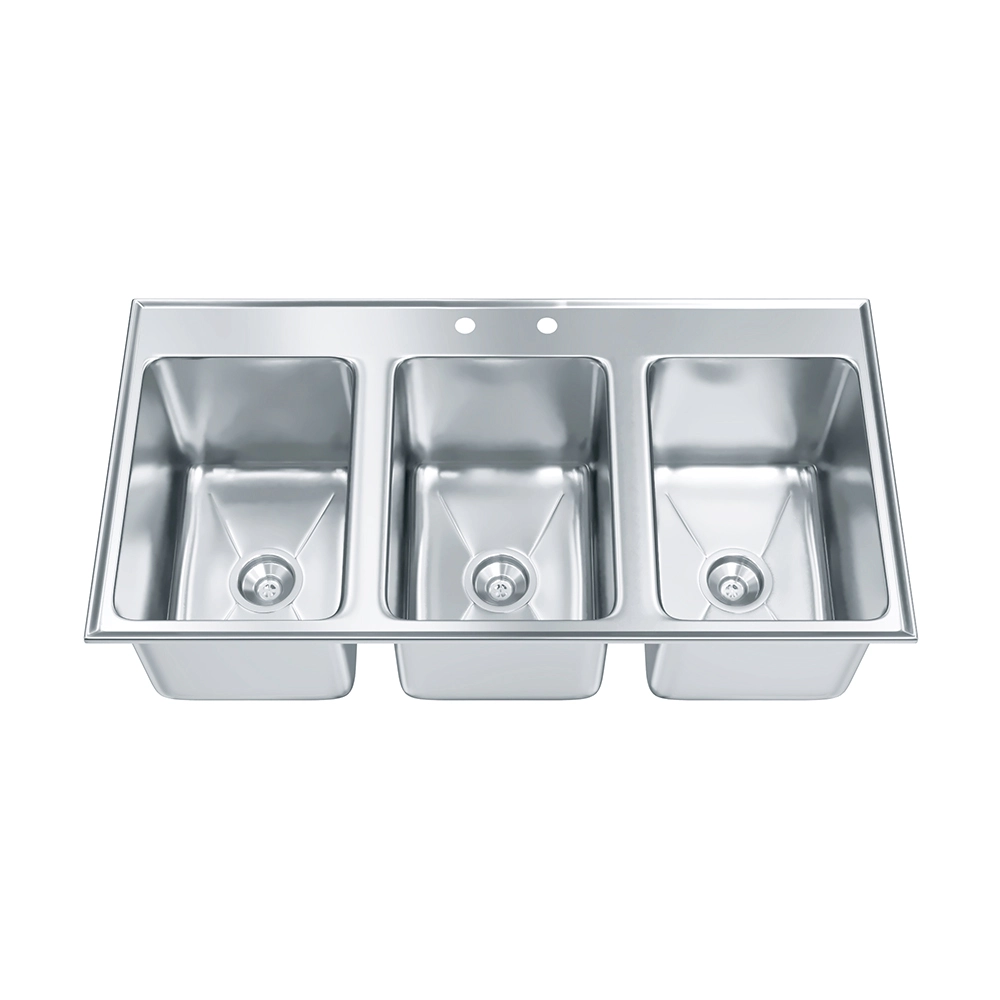 10″ X 14″ X 10″ Stainless Steel Three Compartment Drop in Sink
