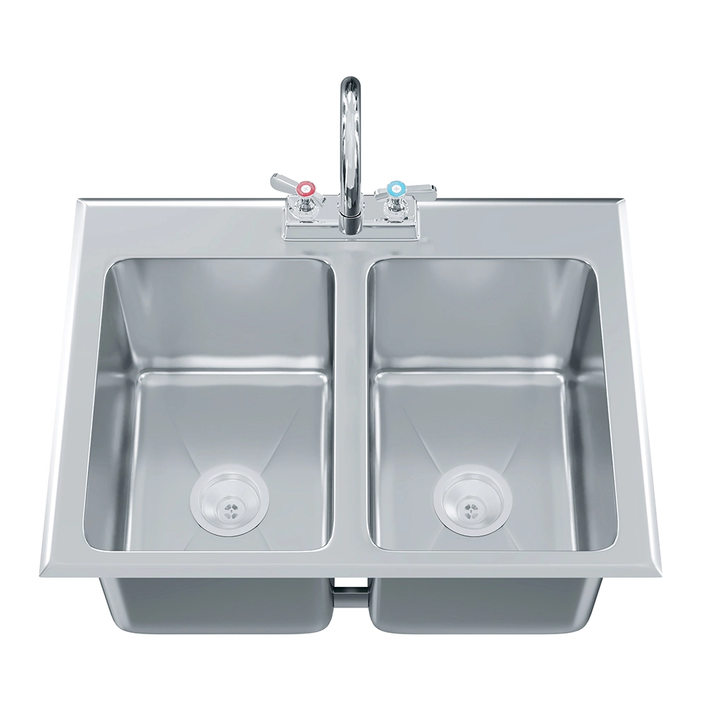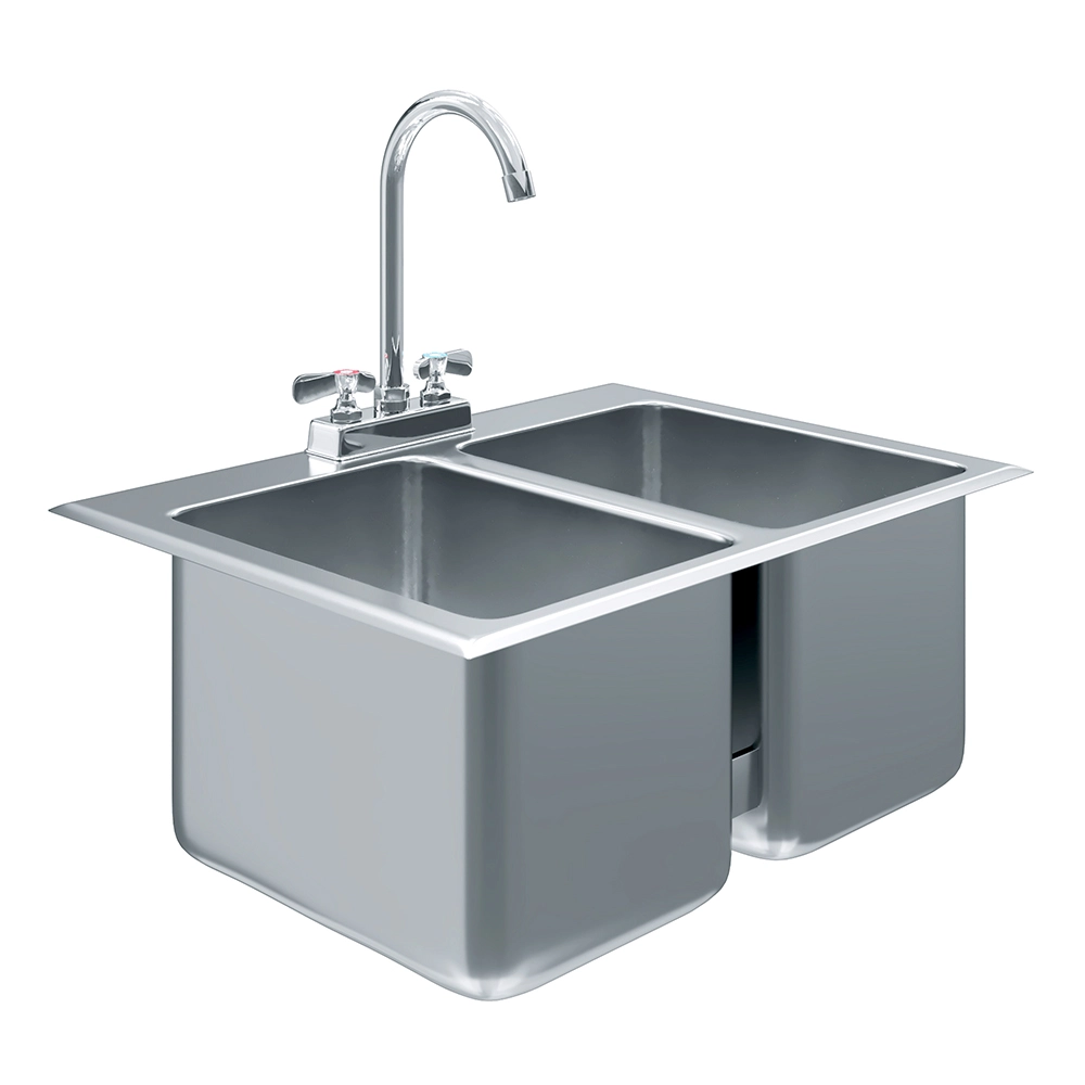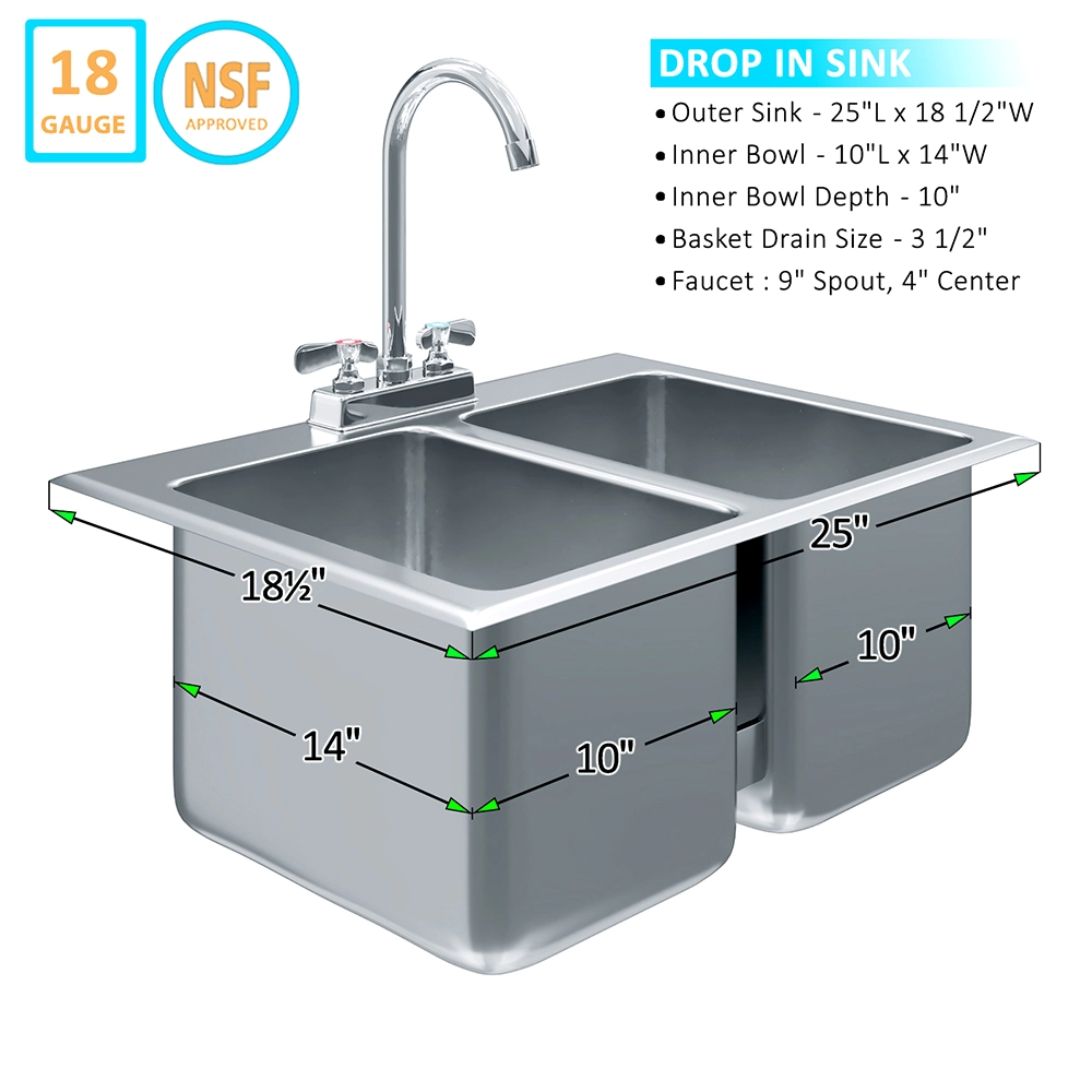 Optimize your workspace with the 10″ x 14″ x 10″ Stainless Steel Two-Compartment Drop-In Sink with Faucet, a compact yet highly functional solution for cleaning and prep tasks. Designed for both residential and commercial use, this sink is crafted from 18GA/304 stainless steel, ensuring resistance to corrosion, rust, and stains for long-lasting performance in demanding environments such as kitchens, bars, food trucks, or utility areas.