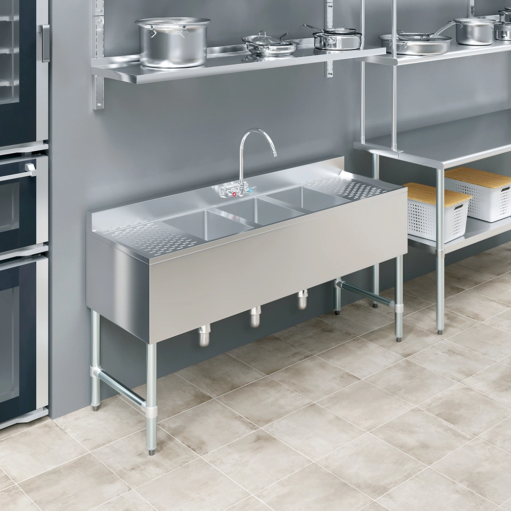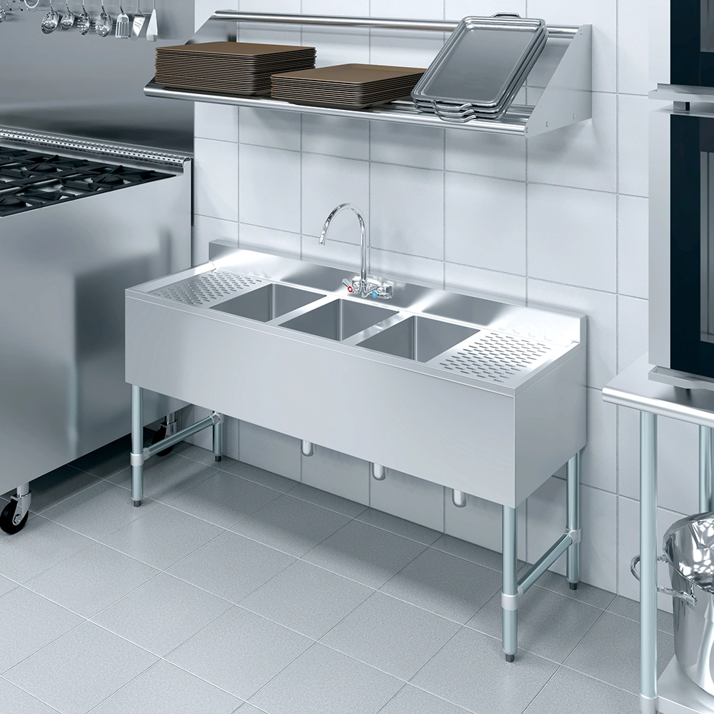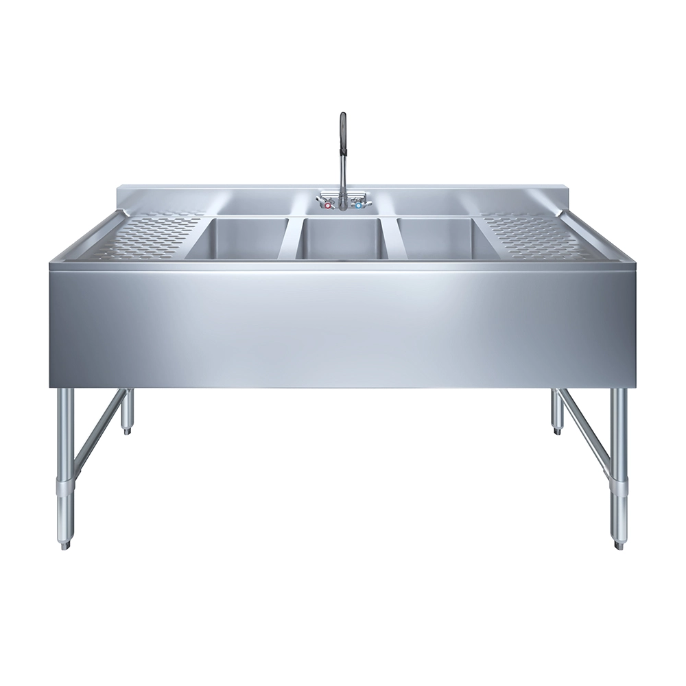 Installation is straightforward, and the sink’s design integrates perfectly into any existing setup. Whether you are upgrading your current bar area or creating a new workspace, the 10″ X 14″ X 10″ Three Compartment Under Bar Sink with 12″ Left and Right Drainboards and Faucet is an excellent choice that combines durability, practicality, and style. Elevate your kitchen or bar with this indispensable piece of equipment, tailored to meet the demands of any busy environment.