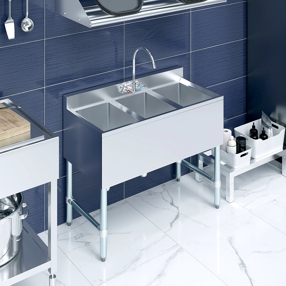 This sink comes equipped with a convenient faucet, offering immediate access to water, enhancing your workflow and efficiency. The faucet is designed for ease of use and optimal water flow, making it perfect for quick rinsing and cleaning. Additionally, the sink features sound-deadening pads that minimize noise, ensuring a quieter environment.