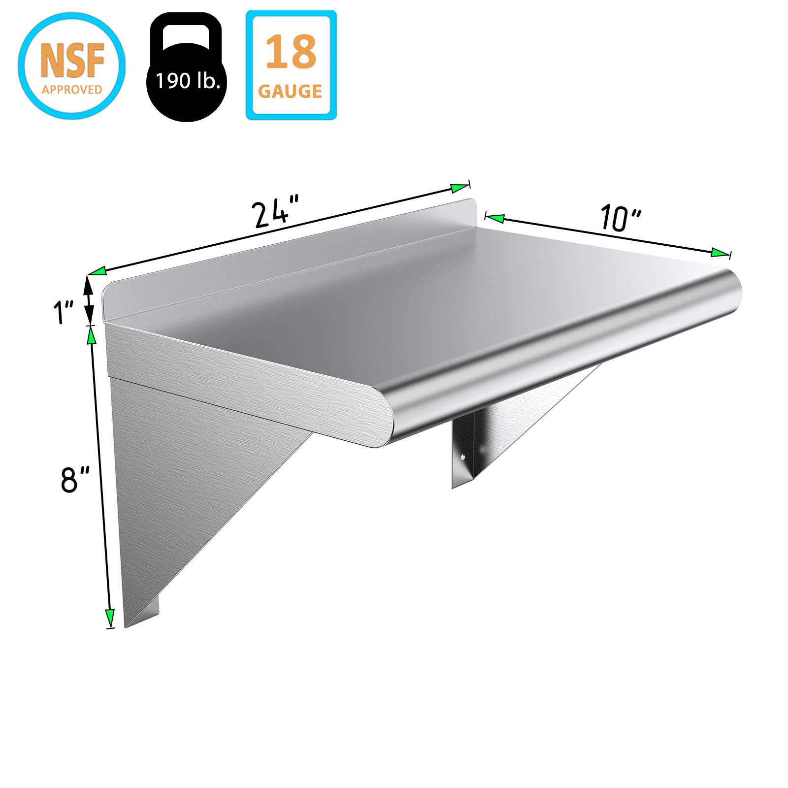 Installation is straightforward with the included mounting hardware, allowing you to securely attach the shelf to any wall surface. The smooth surface is easy to clean, making maintenance a breeze. Whether you need extra storage in your home or a reliable shelving option for your business, our 10″ X 24″ Stainless Steel Wall Mount Shelf is the ideal choice.