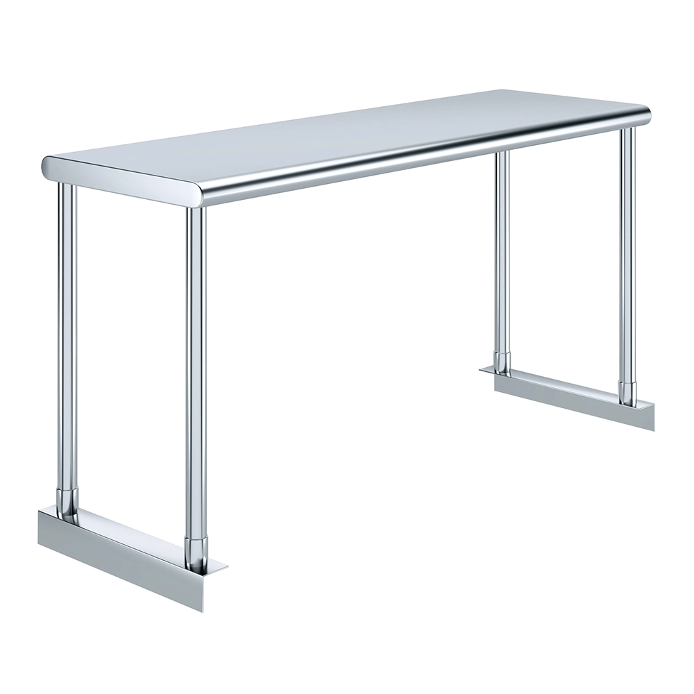 This single-tier overshelf provides additional storage space above prep tables, workstations, or countertops, keeping essential tools, ingredients, or small appliances within easy reach. Its sturdy construction supports heavy-duty use, making it ideal for restaurants, bakeries, catering businesses, and food service establishments.
