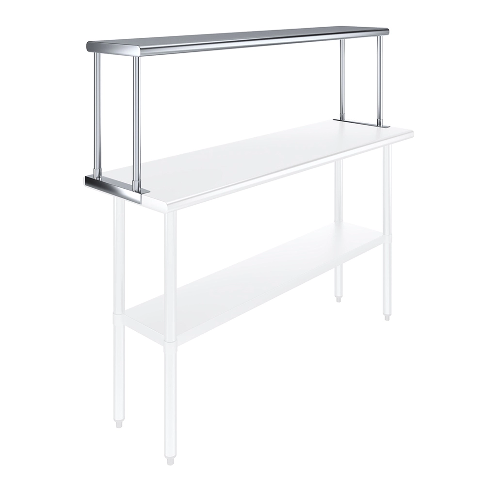 This single-tier overshelf provides additional storage space above prep tables, workstations, or countertops, keeping essential tools, ingredients, or small appliances within easy reach. Its sturdy construction supports heavy-duty use, making it ideal for restaurants, bakeries, catering businesses, and food service establishments.