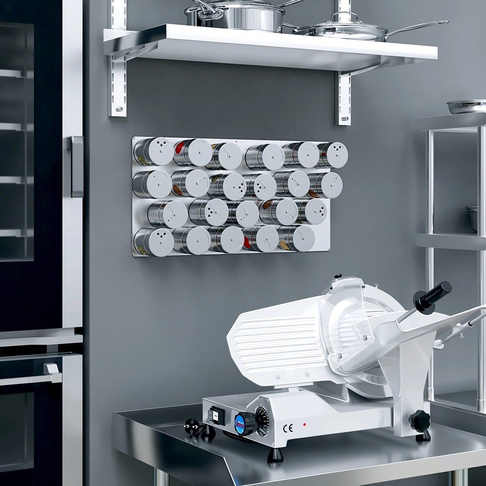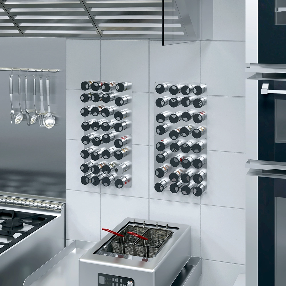 Perfect for use on countertops, shelves, or inside cabinets, the stainless steel spice tin base adds a professional touch to any kitchen while improving workflow and minimizing clutter. It’s a practical and stylish accessory for chefs who value order, cleanliness, and durability in their workspace.