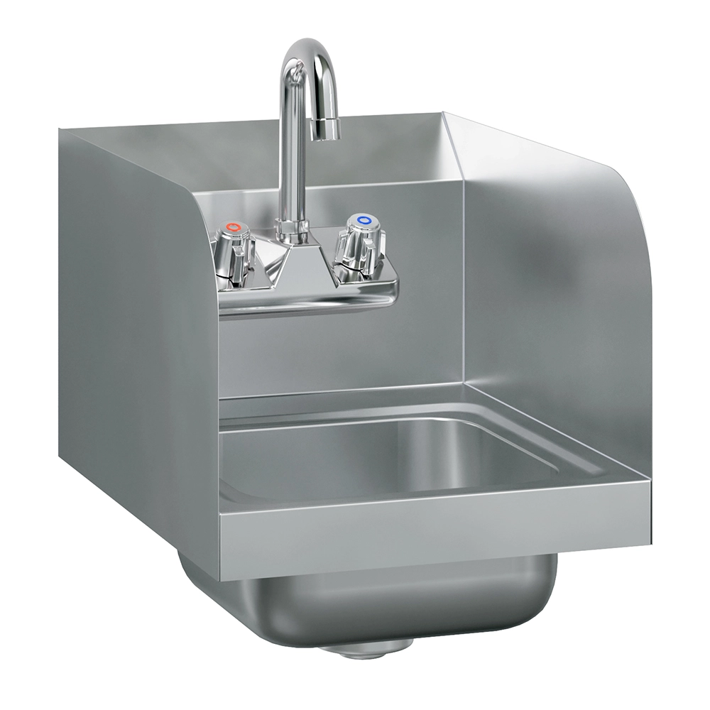 Upgrade your facility with our 12″ X 16″ Stainless Steel Wall Mount Hand Sink, complete with a gooseneck faucet and sidesplash. This versatile sink is designed to meet the rigorous demands of commercial kitchens, food prep areas, and industrial settings, combining durability with functionality.