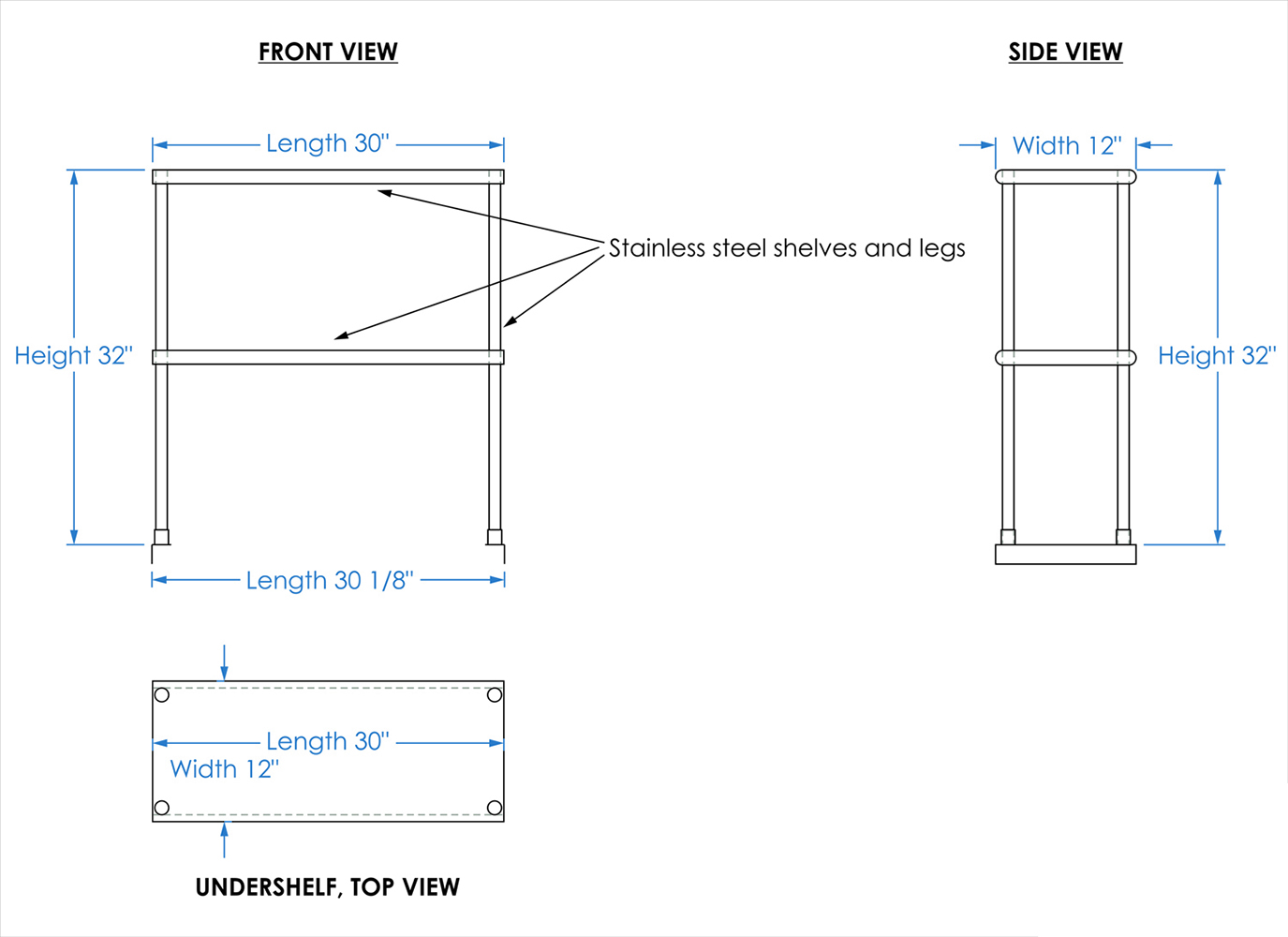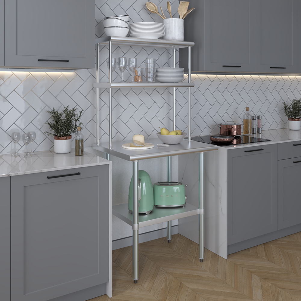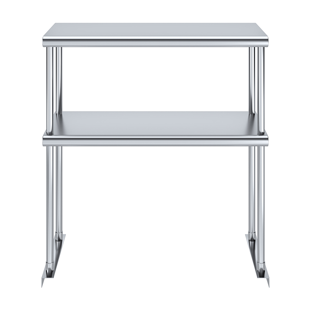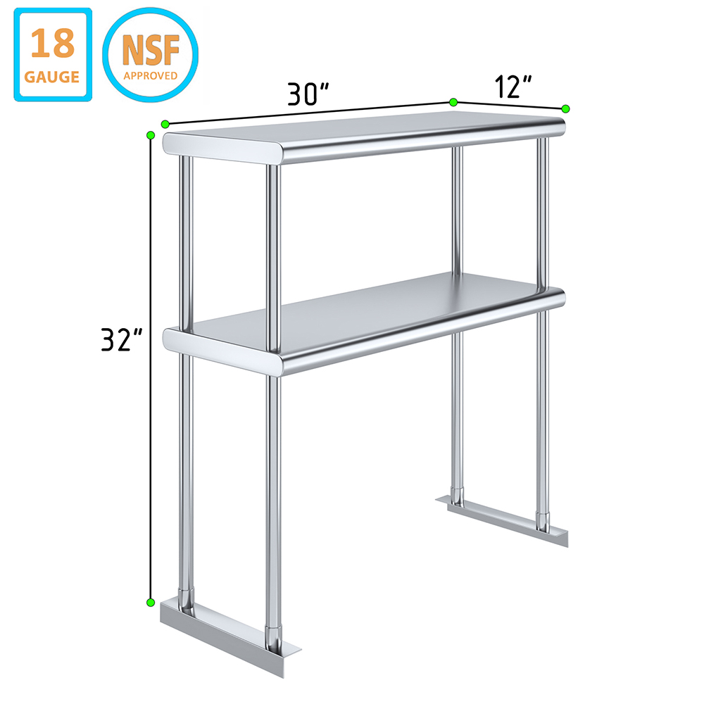 Measuring 12 inches in width and 30 inches in length, this compact yet spacious shelf offers ample storage space across two tiers. The double-tier design maximizes vertical storage capacity, making it ideal for organizing a variety of kitchen essentials, including utensils, ingredients, cookware, and equipment. The open-shelf design allows for easy access and quick retrieval of items, streamlining your workflow and improving productivity.