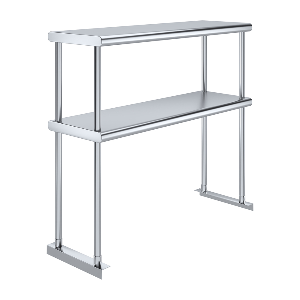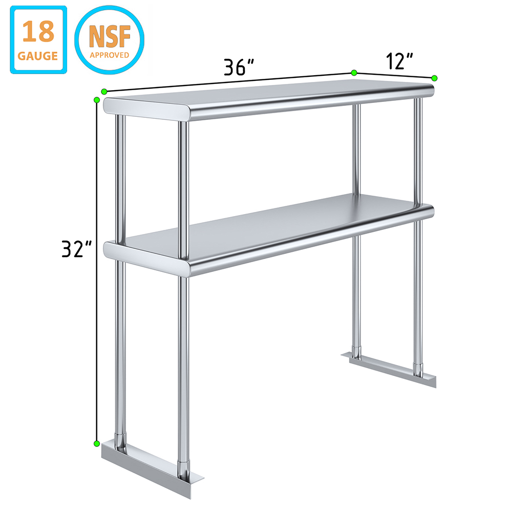 Measuring 12 inches in width and 36 inches in length, this compact yet spacious shelf offers ample storage space across two tiers. The double-tier design maximizes vertical storage capacity, making it ideal for organizing a variety of kitchen essentials, including utensils, ingredients, cookware, and equipment. The open-shelf design allows for easy access and quick retrieval of items, streamlining your workflow and improving productivity.