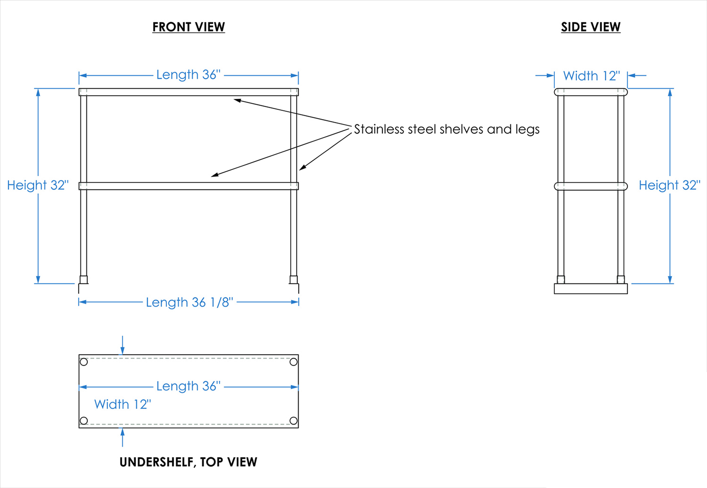 Be the first to review “12″ X 36″ Stainless Steel Double-Tier Shelf”