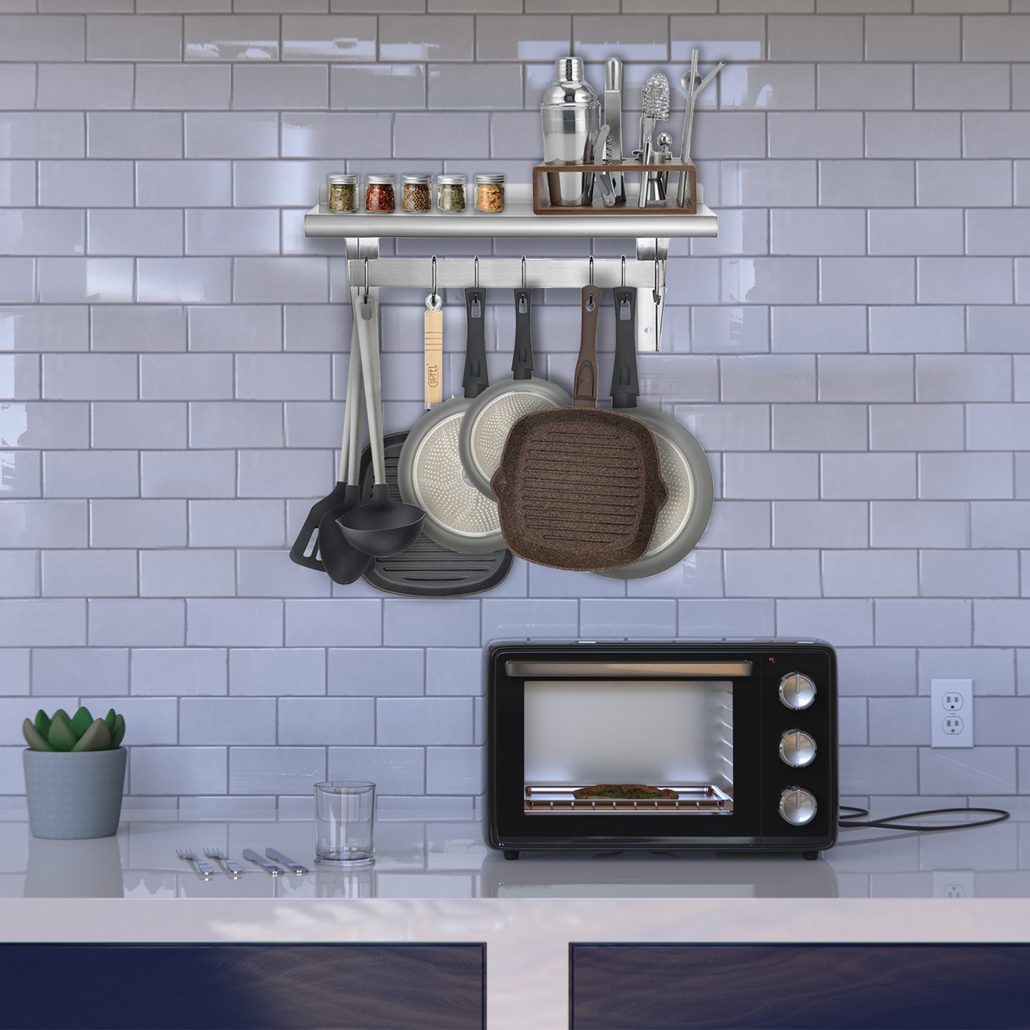 Installation is straightforward, with all necessary mounting hardware included. The wall-mounted design helps you save valuable counter and cabinet space, making it an excellent choice for kitchens of all sizes. Whether you’re a professional chef or a home cook, this pot rack with shelf enhances your kitchen organization and accessibility.