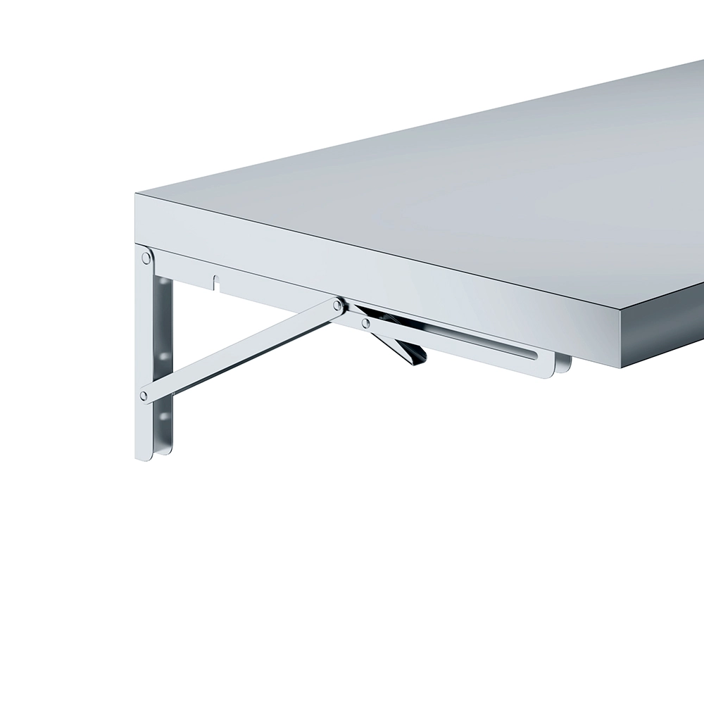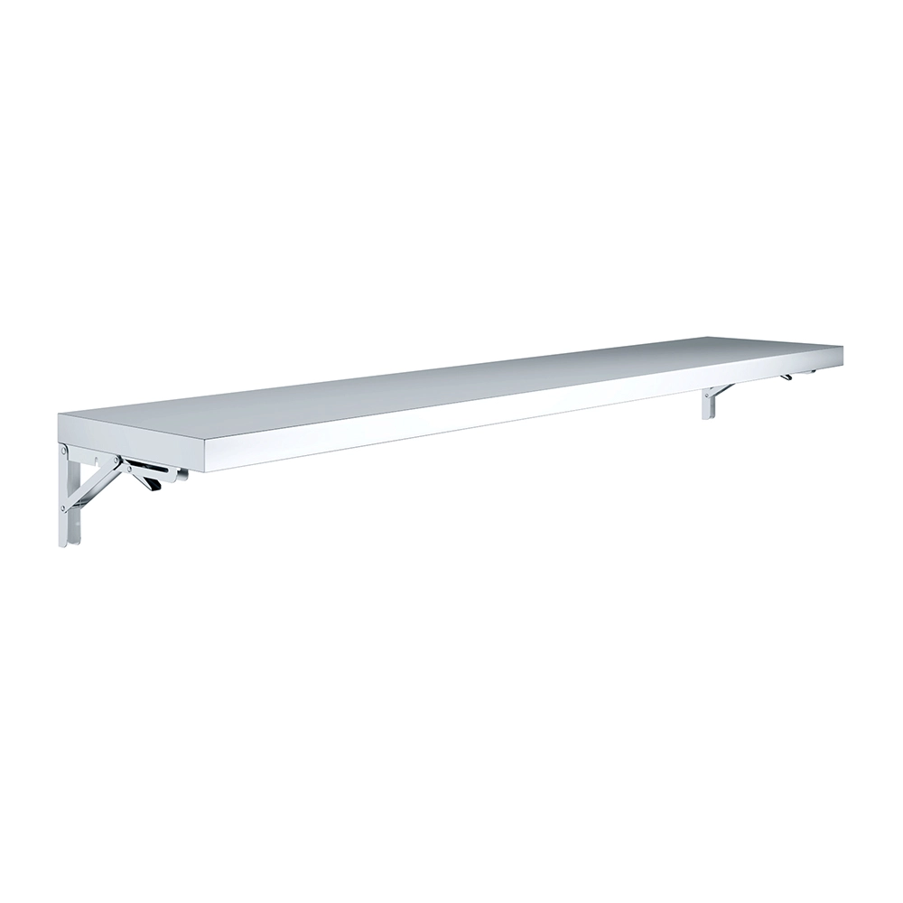 Introducing our 12″ x 60″ Stainless Steel Folding Wall Shelf, an innovative solution for maximizing space and organization in your kitchen, garage, or workspace. This quality shelf is meticulously crafted from 18GA/430 stainless steel, ensuring exceptional durability and resistance, making it ideal for both indoor and outdoor use. The sleek, modern design seamlessly integrates into any setting, adding both functionality and aesthetic appeal.
