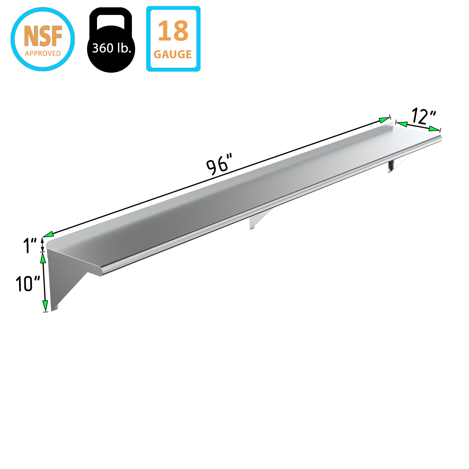 Installation is straightforward with the included mounting hardware, allowing you to securely attach the shelf to any wall surface. The smooth surface is easy to clean, making maintenance a breeze. Whether you need extra storage in your home or a reliable shelving option for your business, our 12″ X 96″ Stainless Steel Wall Mount Shelf is the ideal choice.