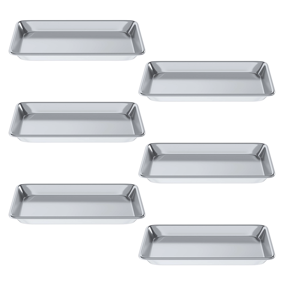 The smooth aluminum surface offers easy food release and simple cleanup, helping kitchens stay efficient during busy service hours. Compact in size, these quarter sheet pans are perfect for smaller ovens, warming units, food trucks, and limited-space kitchens, while still delivering professional-grade quality. This convenient pack of six allows for multitasking and high-volume production, making it an excellent choice for bakeries, cafés, catering services, restaurants, and home professionals seeking reliability and durability in everyday baking tools.