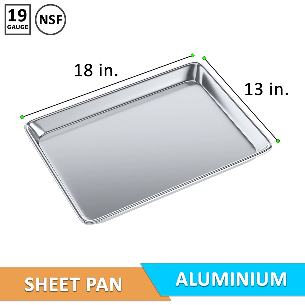 Upgrade your commercial baking setup with this 13 in. x 18 in. Half Size Aluminum Bun Pan (Pack of 6), constructed from durable 19-gauge aluminum for long-lasting, professional performance. These pans provide excellent heat conductivity, ensuring even baking, browning, and roasting for a wide range of foods including pastries, cookies, breads, sheet-pan meals, and prep items. Lightweight yet sturdy, each pan resists bending and warping under frequent, high-temperature use, making them ideal for busy kitchens.