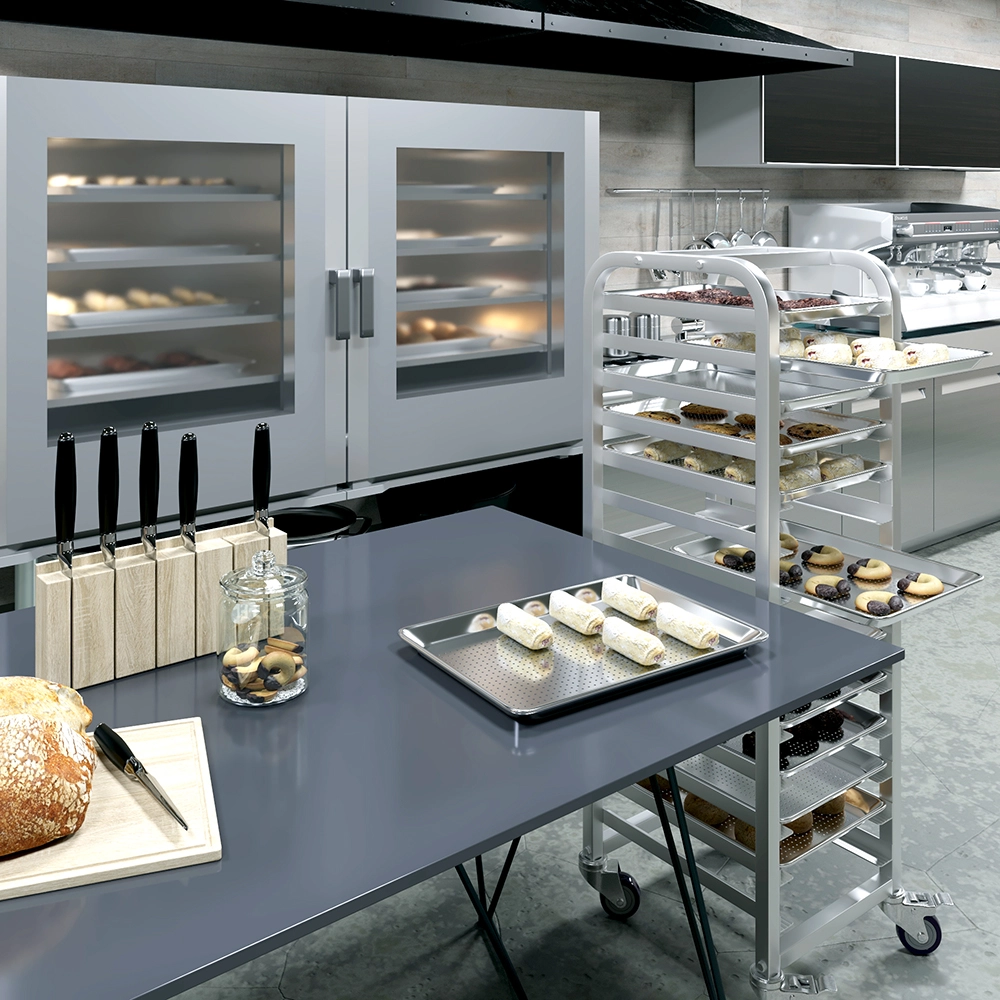 Its lightweight yet sturdy construction resists warping under high heat, ensuring consistent results in commercial ovens. The smooth aluminum surface is easy to clean and maintain, making it a practical choice for bakeries, cafés, restaurants, and food-service operations. Designed for daily use, this perforated sheet pan brings professional-grade quality to any fast-paced kitchen environment.