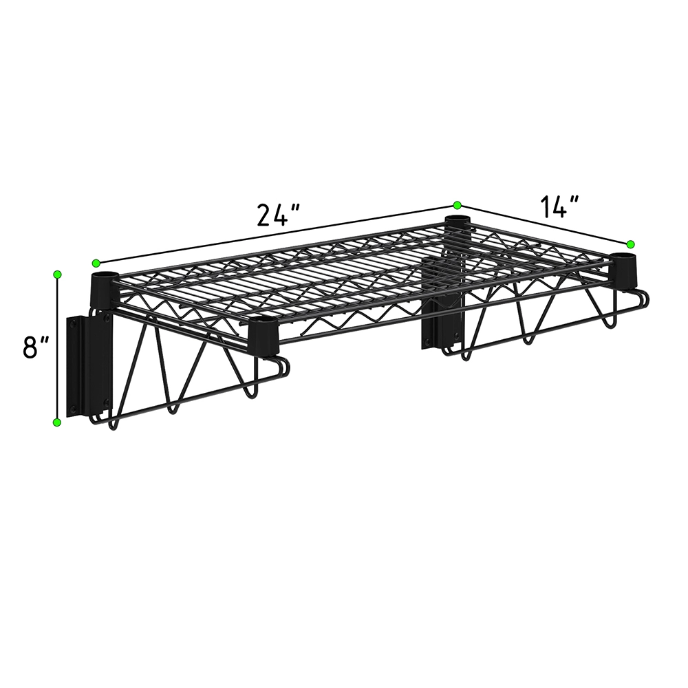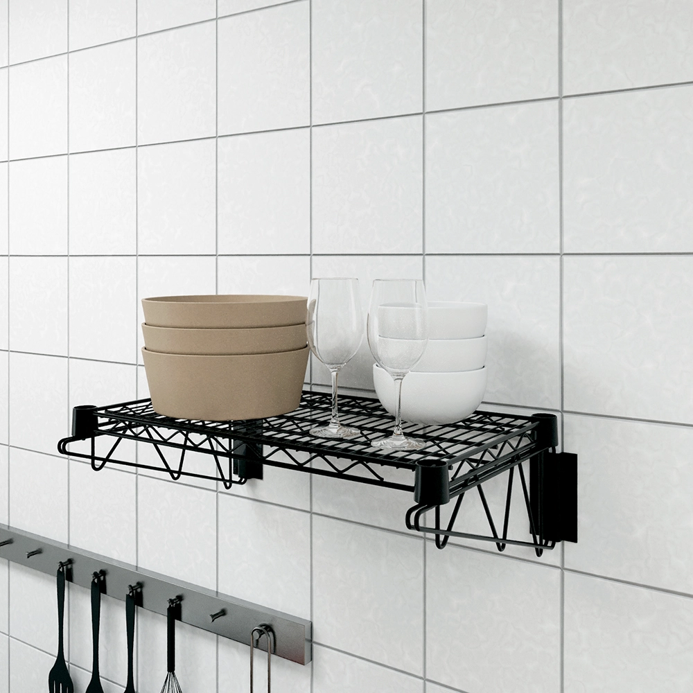 The 14 in. x 24 in. Black Epoxy Wall Mount Wire Shelf is a versatile and durable storage solution designed to optimize space in kitchens, pantries, garages, laundry rooms, and commercial settings. Made from high-quality steel, it features a black epoxy-coated finish that resists rust, corrosion, and wear, ensuring long-term durability. The open-wire design promotes air circulation, preventing dust buildup and keeping stored items fresh and clean.
