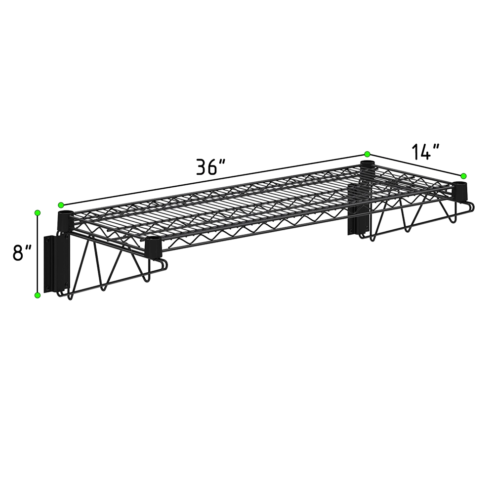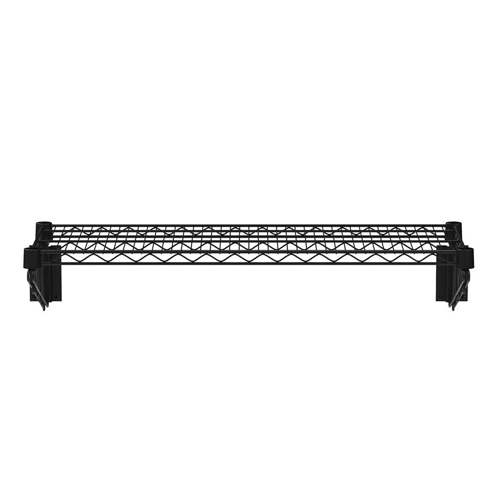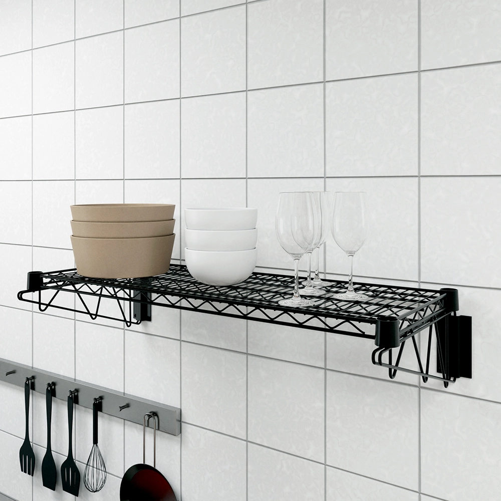 The 14 in. x 36 in. Black Epoxy Wall Mount Wire Shelf is a versatile and durable storage solution designed to optimize space in kitchens, pantries, garages, laundry rooms, and commercial settings. Made from high-quality steel, it features a black epoxy-coated finish that resists rust, corrosion, and wear, ensuring long-term durability. The open-wire design promotes air circulation, preventing dust buildup and keeping stored items fresh and clean.