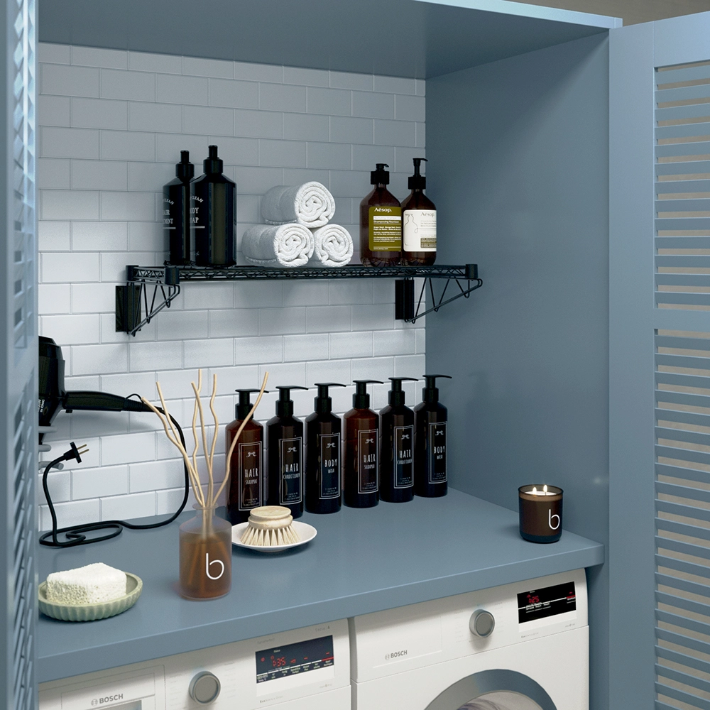 Designed for easy installation, the shelf includes all necessary mounting hardware. Whether used in homes or commercial environments, this space-saving wire shelf enhances organization while maintaining a clean, streamlined look