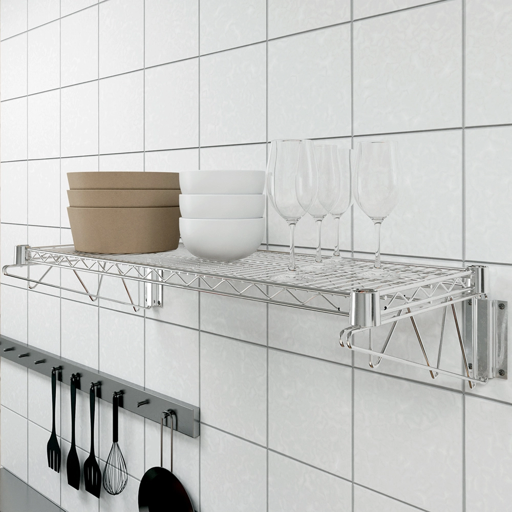 Installation is quick and easy with all necessary hardware included. Whether you’re maximizing storage in tight spaces or creating a cleaner, more organized environment, this chrome wire shelf offers a reliable and attractive solution.