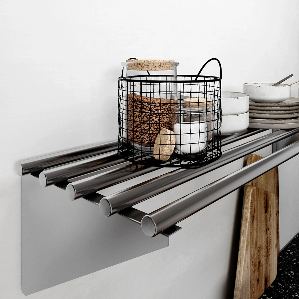 The stainless steel construction is not only durable but also easy to clean, maintaining hygiene and a polished look in any setting. This makes it particularly suitable for kitchens and food preparation areas, where cleanliness is essential. The shelf’s sleek and minimalist design complements a range of decor styles, from contemporary to industrial.
