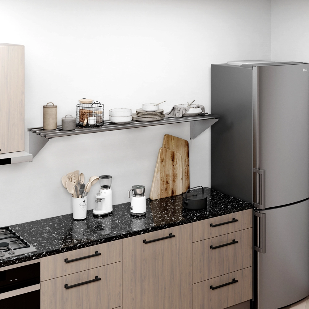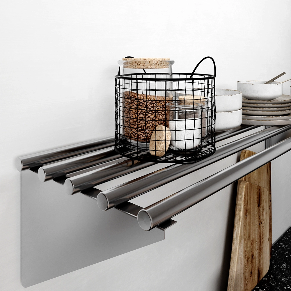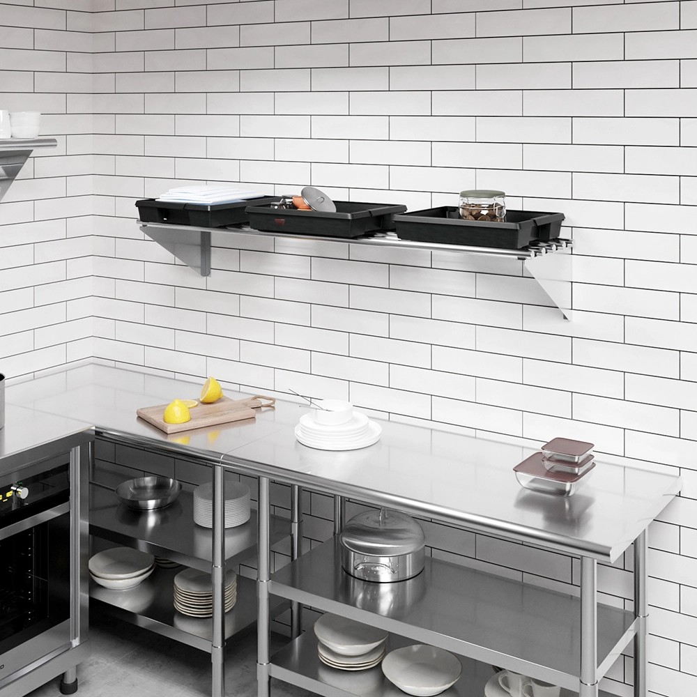 The stainless steel construction is not only durable but also easy to clean, maintaining hygiene and a polished look in any setting. This makes it particularly suitable for kitchens and food preparation areas, where cleanliness is essential. The shelf’s sleek and minimalist design complements a range of decor styles, from contemporary to industrial.