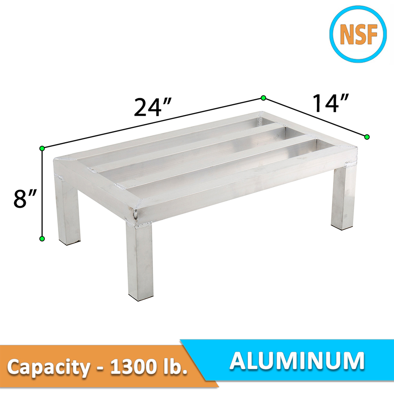 Introducing the 14″ Wide x 24″ Length x 8″ Height Aluminum Dunnage Rack, a premium storage solution designed to enhance the efficiency and organization of your commercial kitchen, warehouse, or storage room. Constructed from aluminum, this dunnage rack is built to last, offering exceptional, making it ideal for environments where durability and hygiene are paramount.