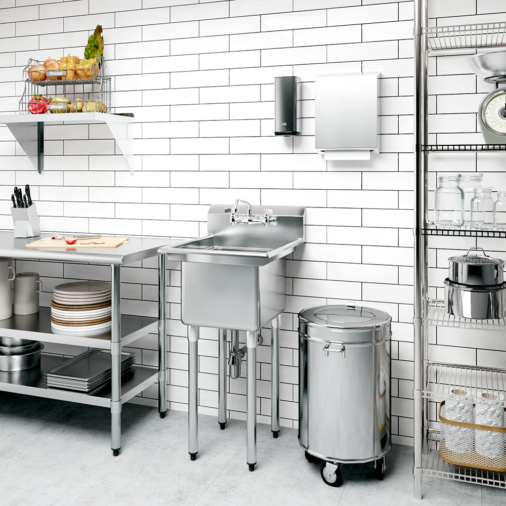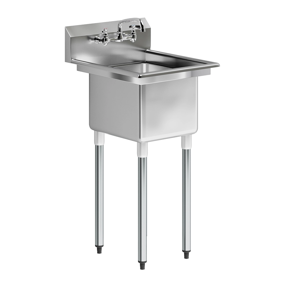 The sink boasts a spacious 14″ x 16″ compartment, designed to handle a variety of tasks such as washing dishes, rinsing produce, and prepping ingredients. The generous size makes it an ideal choice for busy environments where multiple tasks need to be performed efficiently and hygienically.