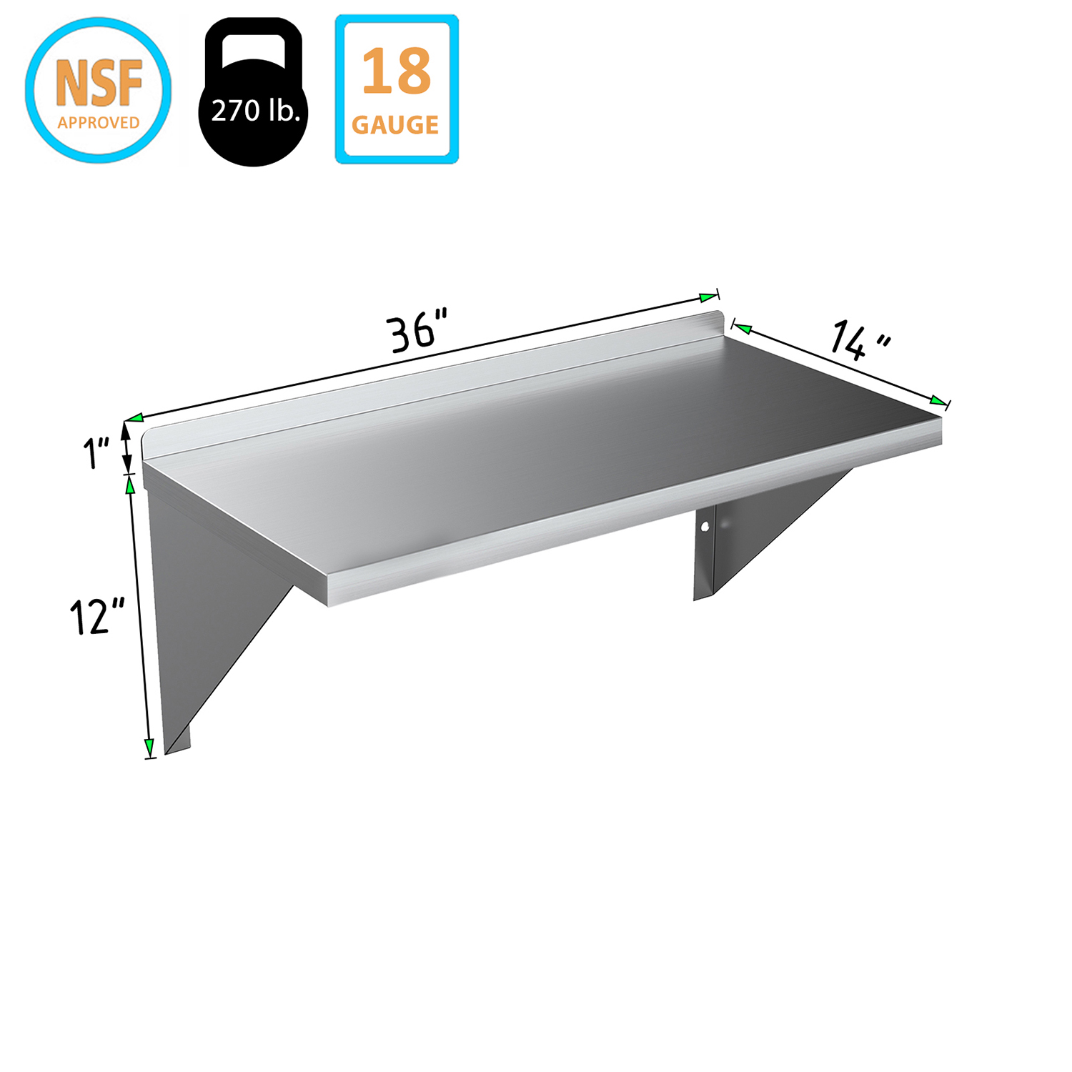Whether you need extra storage in your home or a reliable shelving option for your business, our 14″ X 36″ Stainless Steel Wall Mount Shelf with Square Edge is the perfect choice. Experience the blend of functionality and style with this durable, easy-to-clean, and aesthetically pleasing shelf, designed to meet your storage needs with elegance and efficiency.