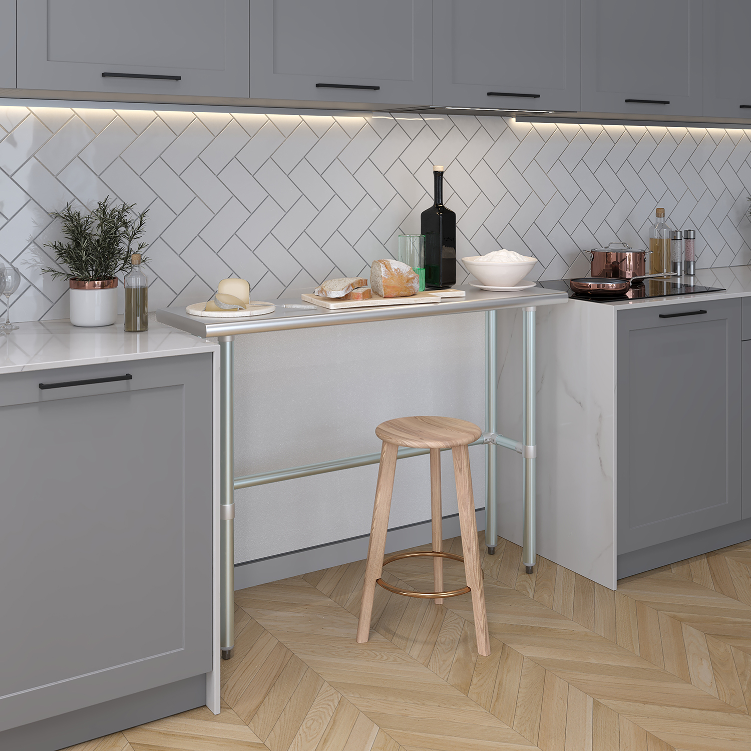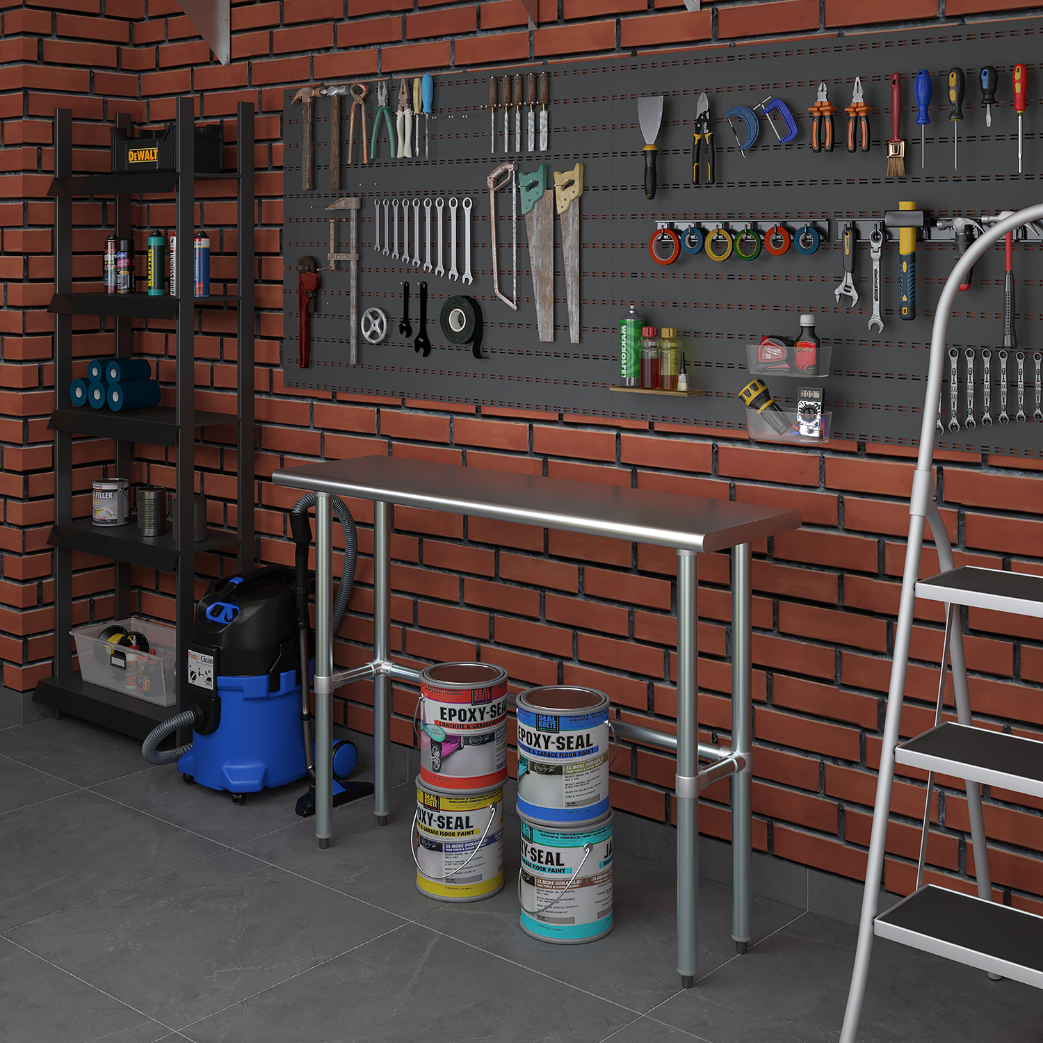 Measuring 14 inches by 48 inches, this work table offers a compact footprint that fits seamlessly into smaller spaces while still providing ample workspace for your projects. The clean, modern design complements any setting, adding a touch of professionalism to your environment. Whether you’re slicing ingredients in a busy kitchen, assembling components in a workshop, or conducting experiments in a lab, this stainless steel work table is a reliable and stylish addition to your workspace.