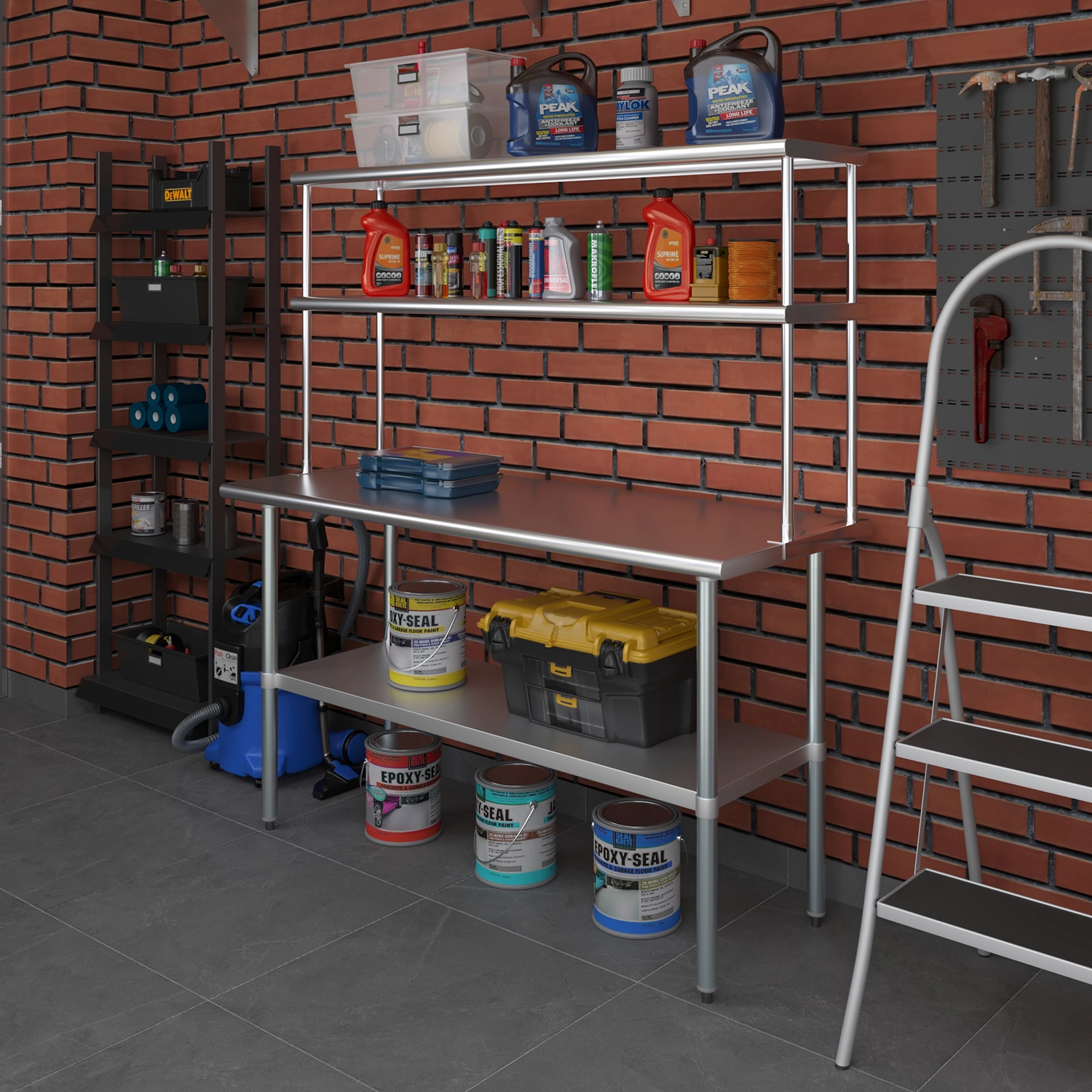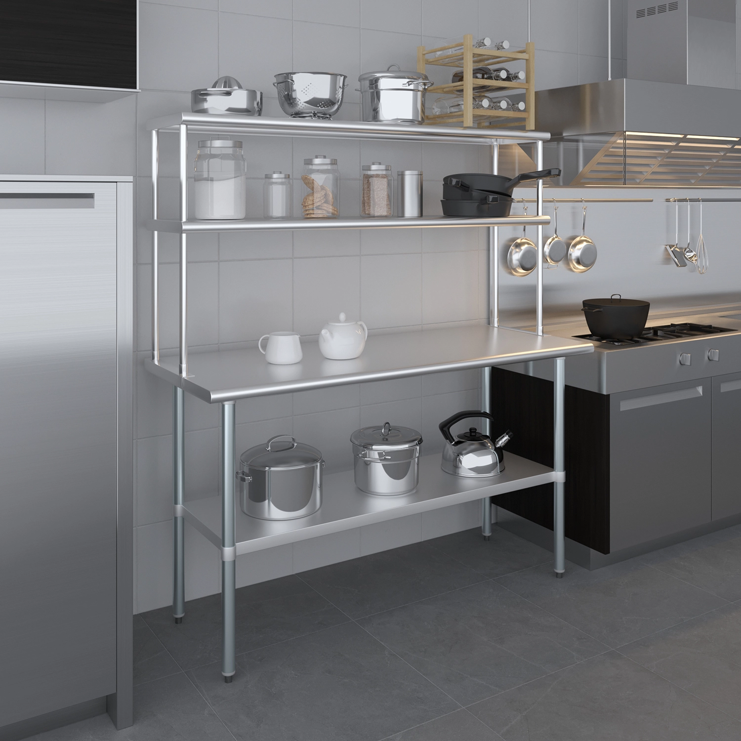 Measuring 14 inches in width and 60 inches in length, this compact yet spacious shelf offers ample storage space across two tiers. The double-tier design maximizes vertical storage capacity, making it ideal for organizing a variety of kitchen essentials, including utensils, ingredients, cookware, and equipment. The open-shelf design allows for easy access and quick retrieval of items, streamlining your workflow and improving productivity.