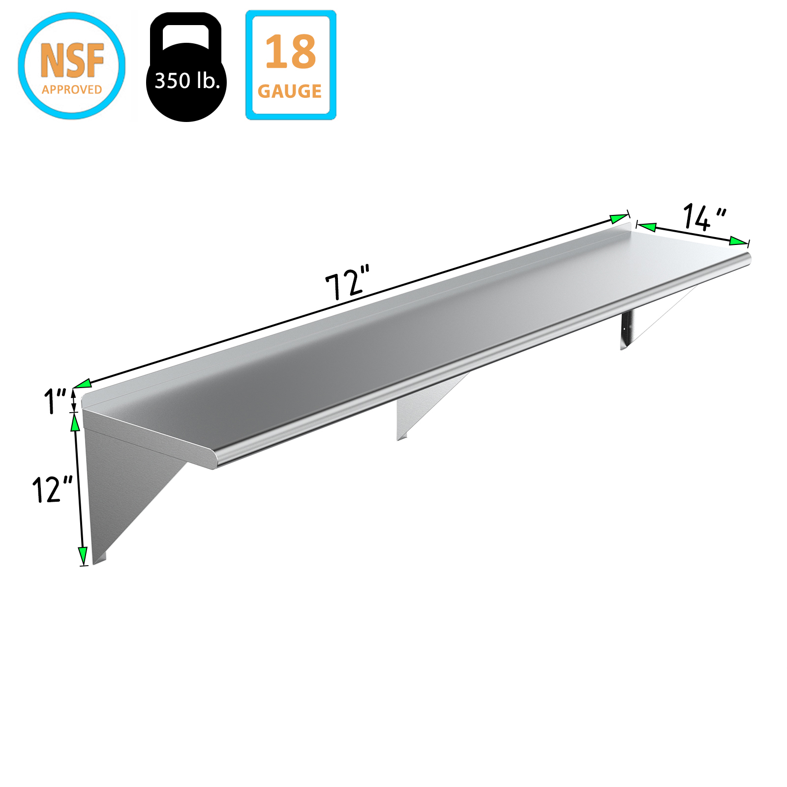 Installation is straightforward with the included mounting hardware, allowing you to securely attach the shelf to any wall surface. The smooth surface is easy to clean, making maintenance a breeze. Whether you need extra storage in your home or a reliable shelving option for your business, our 14″ X 72″ Stainless Steel Wall Mount Shelf is the ideal choice.