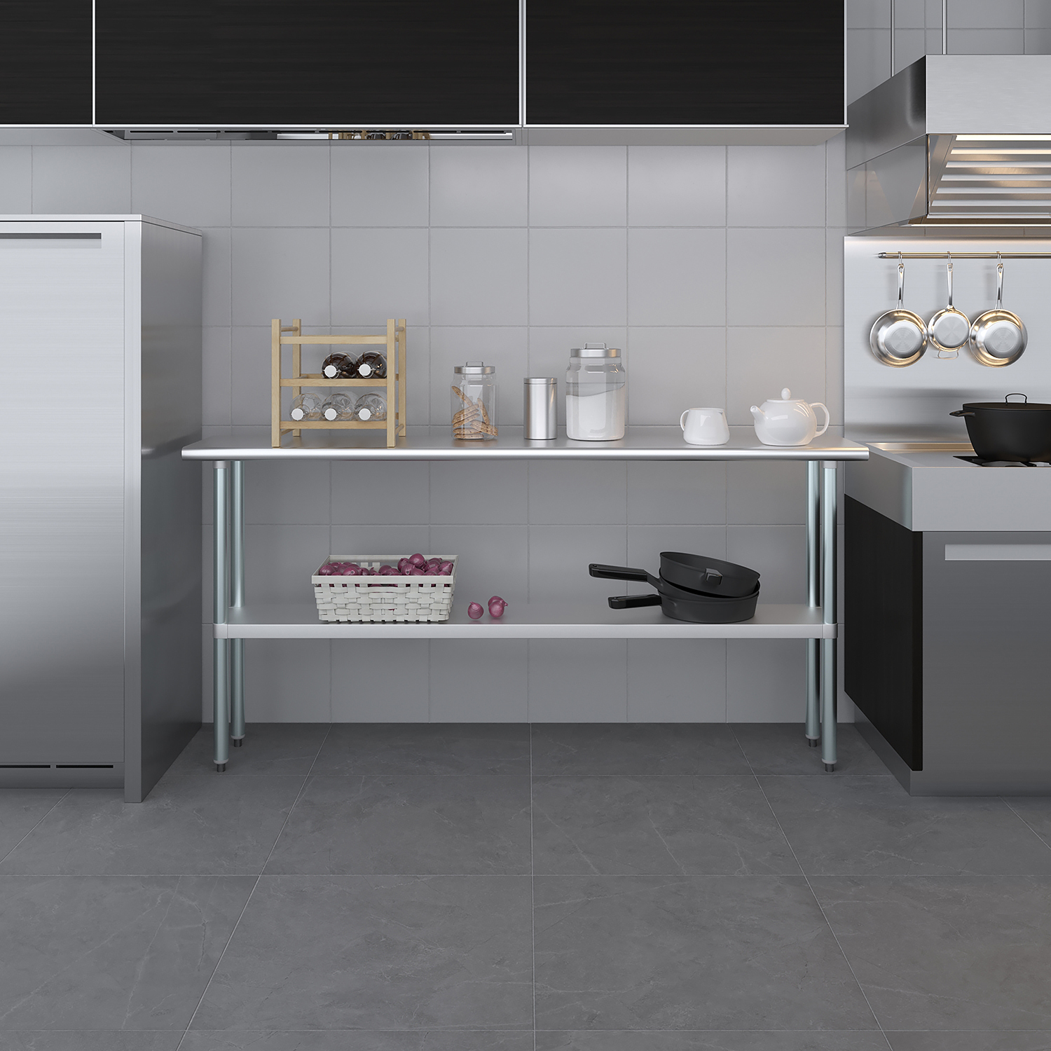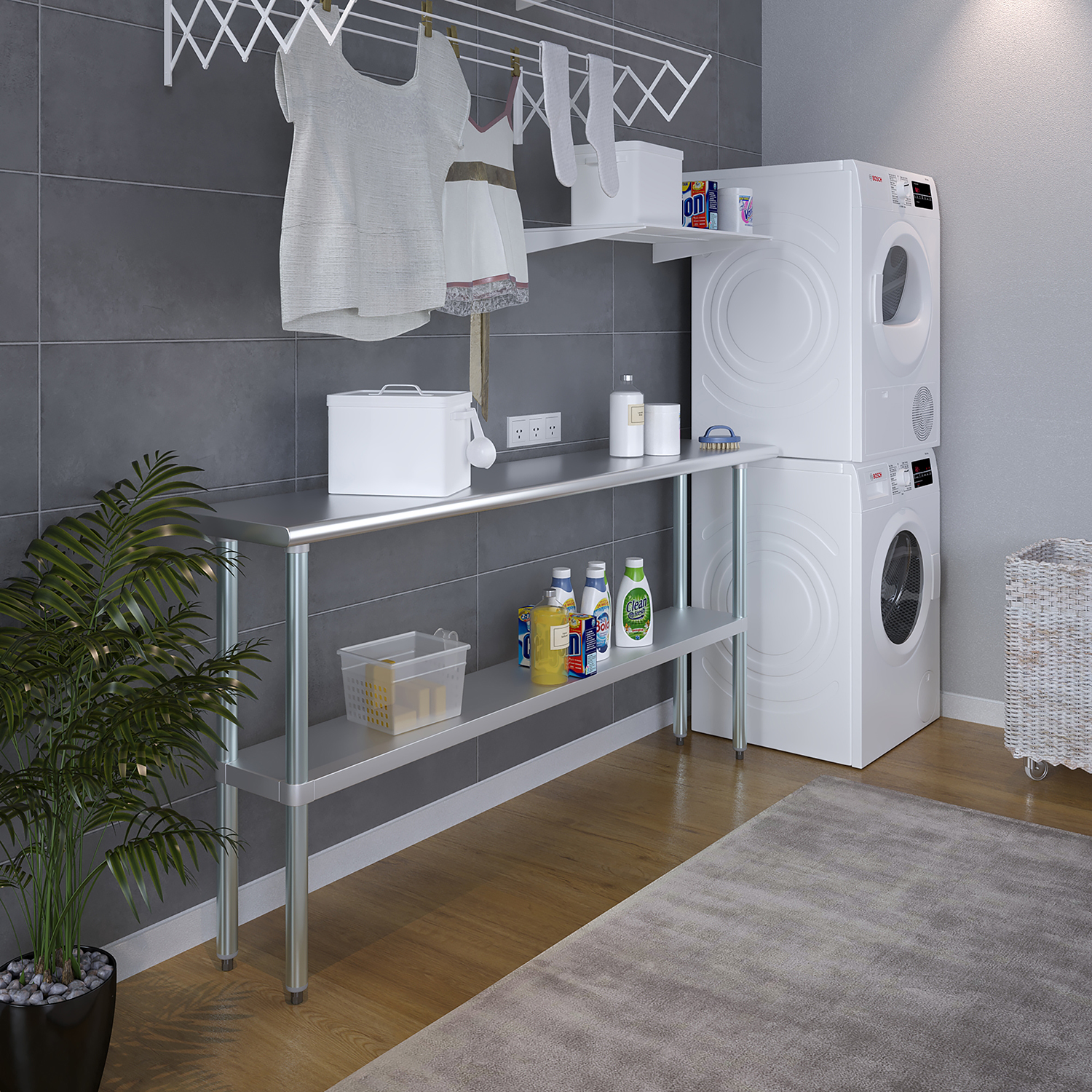 Introducing the 14″ X 72″ Stainless Steel Work Table with Undershelf – a robust and versatile solution for enhancing efficiency and organization in any commercial kitchen, workshop, or utility space. Meticulously crafted from 18GA/430 stainless steel, this work table ensures exceptional durability, resistance and easy maintenance, making it a reliable addition to any professional environment.