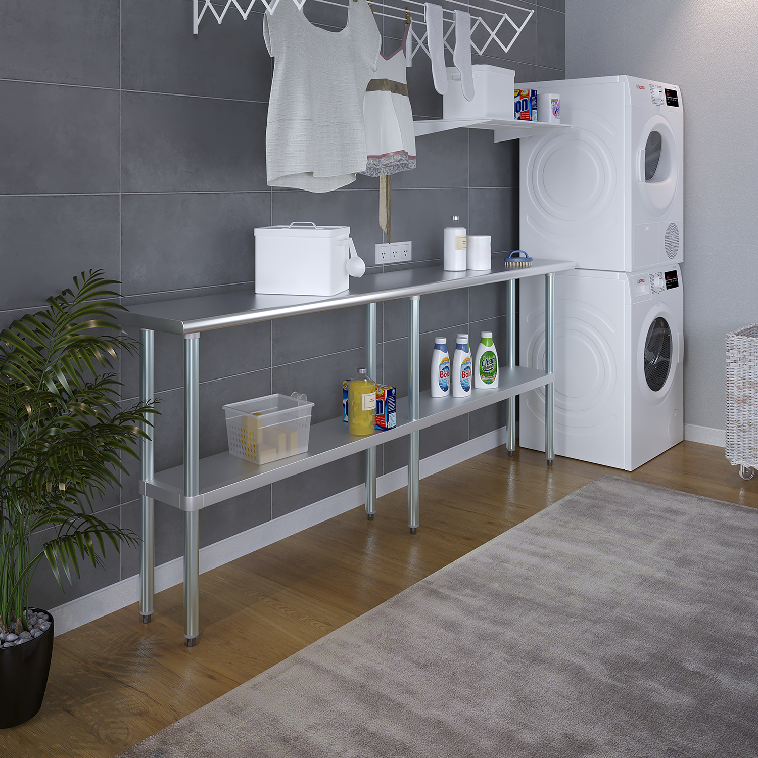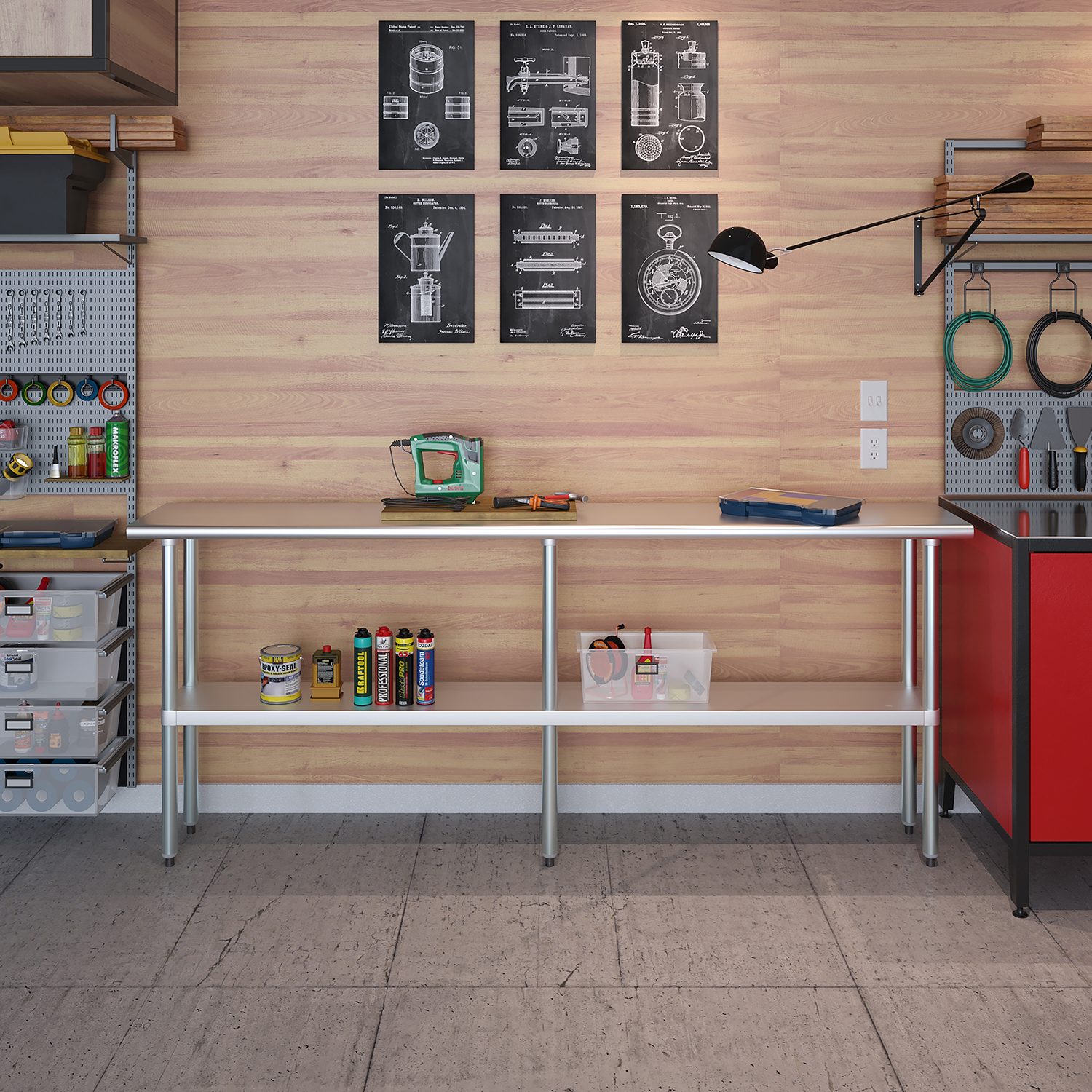 A key feature of this work table is the adjustable undershelf, which offers additional storage space for tools, supplies, and equipment. This undershelf can be positioned at your preferred height, allowing for customized storage solutions that meet your specific needs. Whether you need to store heavy equipment or small utensils, this versatile shelf enhances the functionality of your workspace by keeping essential items within easy reach.