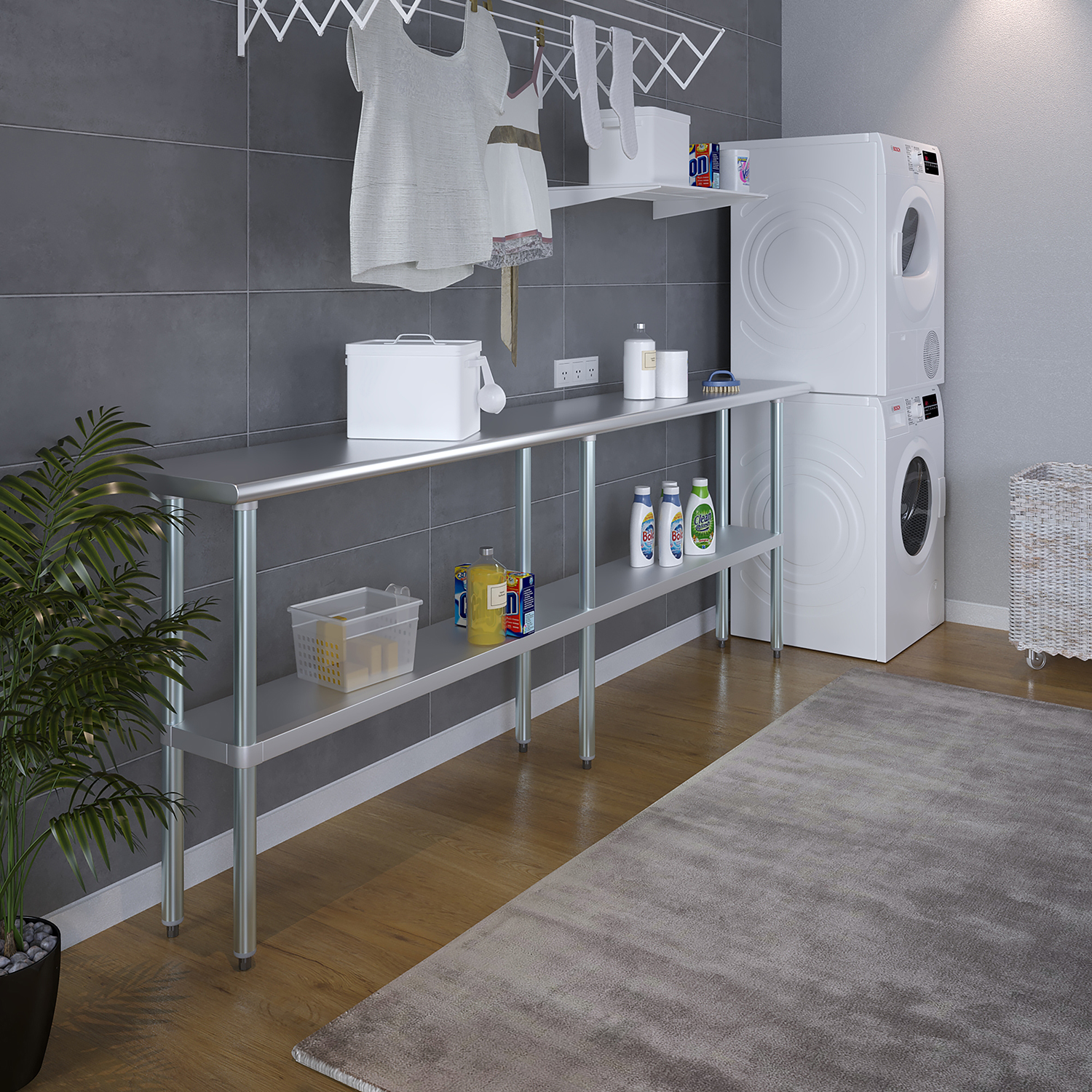 A key feature of this work table is the adjustable undershelf, which offers additional storage space for tools, supplies, and equipment. This undershelf can be positioned at your preferred height, allowing for customized storage solutions that meet your specific needs. Whether you need to store heavy equipment or small utensils, this versatile shelf enhances the functionality of your workspace by keeping essential items within easy reach.