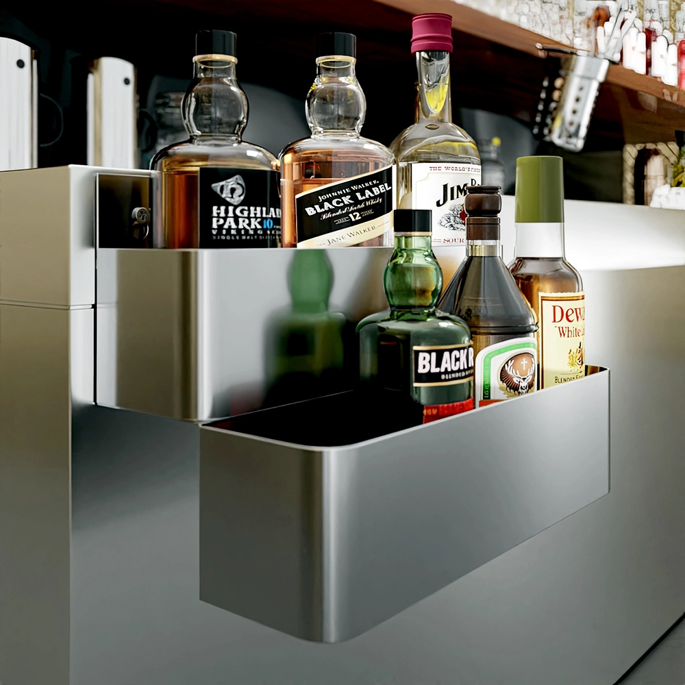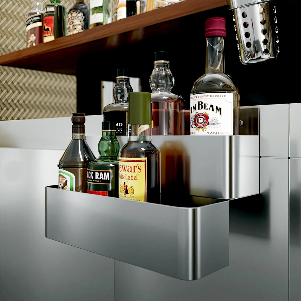 The innovative double-tier design provides ample storage space, allowing you to keep a wide array of bottles readily accessible. The 15-inch length accommodates multiple bottles on each tier, ensuring that your most frequently used spirits, mixers, oils, or sauces are within easy reach. This design not only optimizes your workspace but also helps maintain a neat and organized setup, crucial for fast-paced service areas.