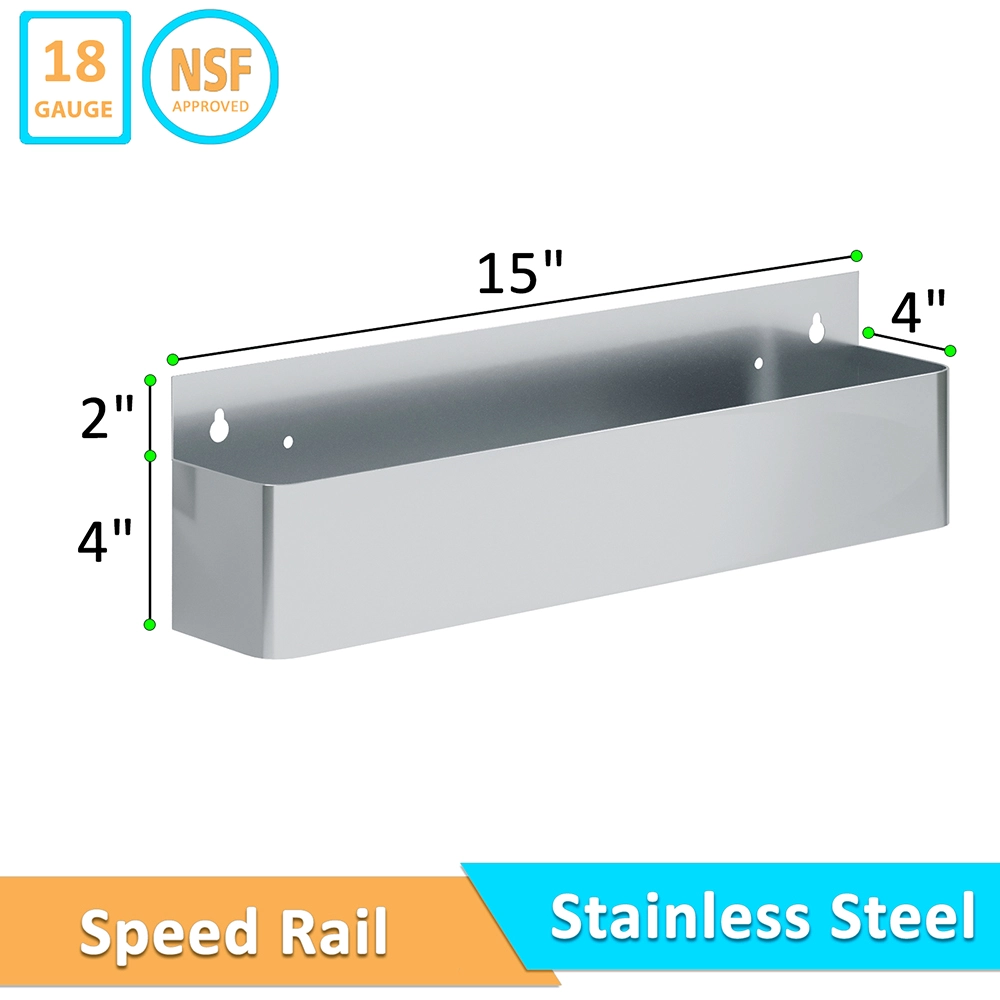 The single-tier design of this speed rail rack provides easy and quick access to frequently used bottles, making it a practical solution for busy bartenders and kitchen staff. Measuring 15 inches in length, it offers ample space to accommodate multiple bottles, from spirits and mixers in a bar setting to oils and sauces in a kitchen. This allows for a well-organized and streamlined workspace, helping you serve customers faster and with greater efficiency.
