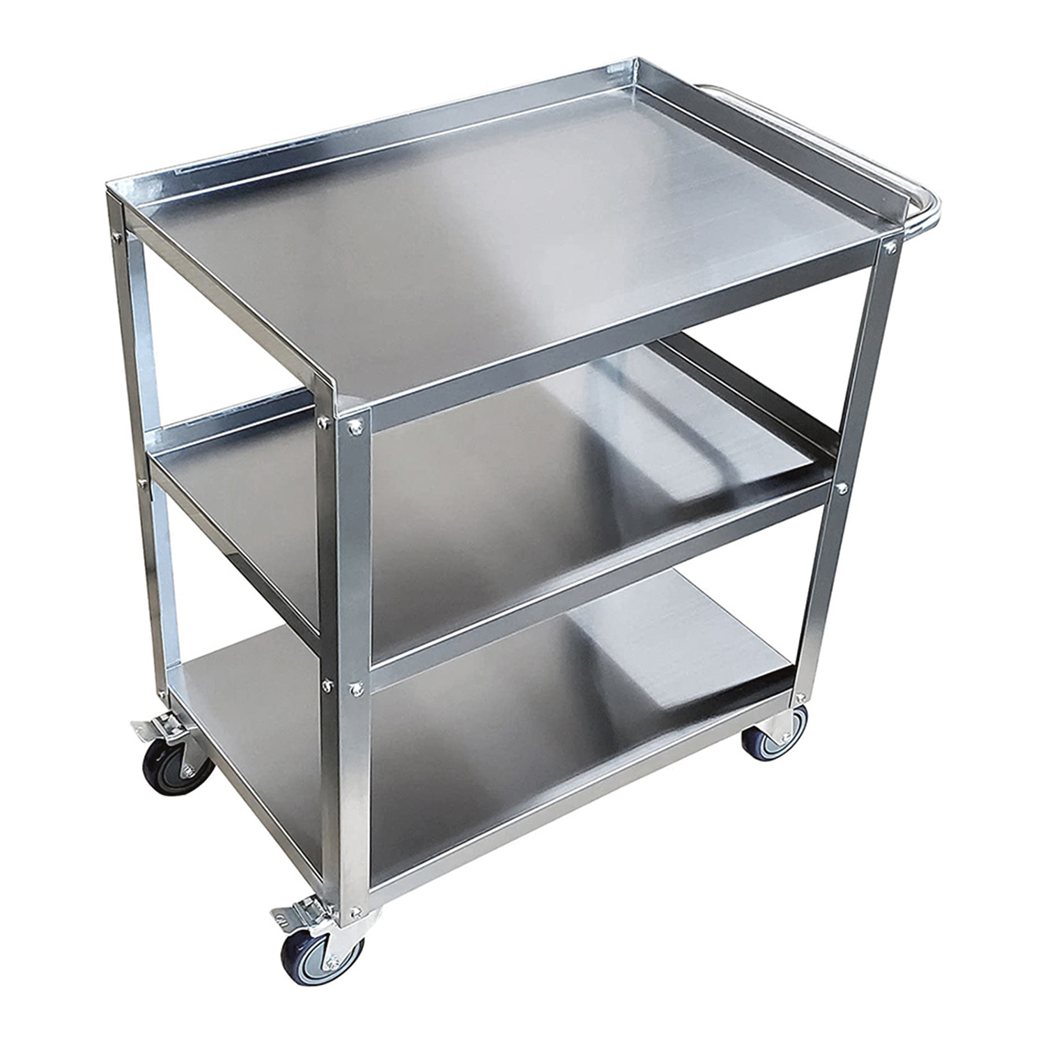 Equipped with smooth-rolling wheels, this utility cart offers excellent mobility, allowing you to effortlessly move your supplies and equipment from one area to another. The wheels are designed to glide smoothly over various surfaces, and the cart includes locking casters to ensure stability and safety when stationary. This feature makes it an ideal choice for dynamic kitchen environments where quick and efficient transport is essential.