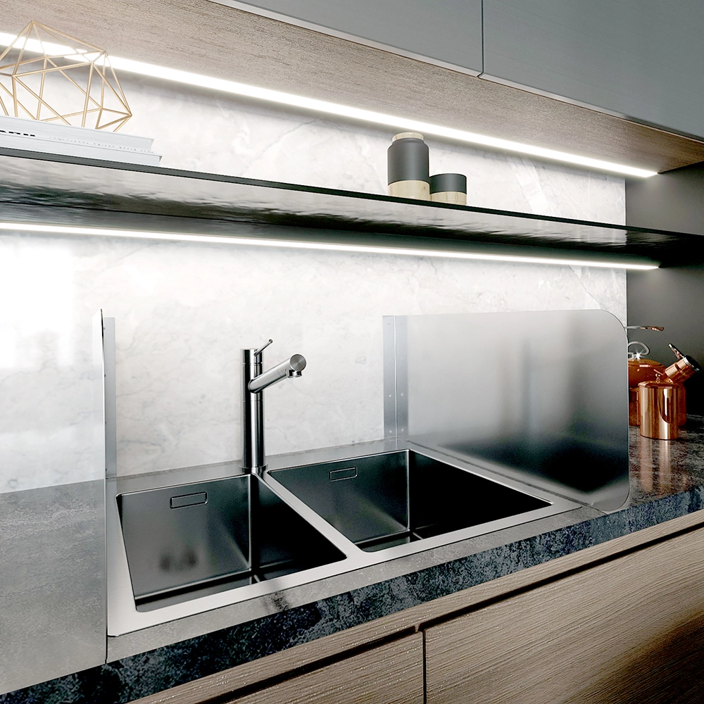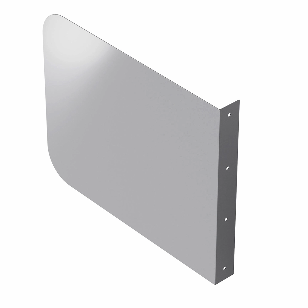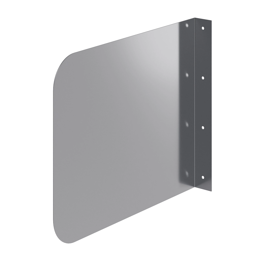 Designed to be mounted directly to the wall next to sinks or workstations, the splash guard serves as a protective barrier that helps prevent water, food particles, and other debris from splashing onto adjacent walls, equipment, or prep surfaces. This not only helps to maintain cleanliness but also supports compliance with health and safety regulations.