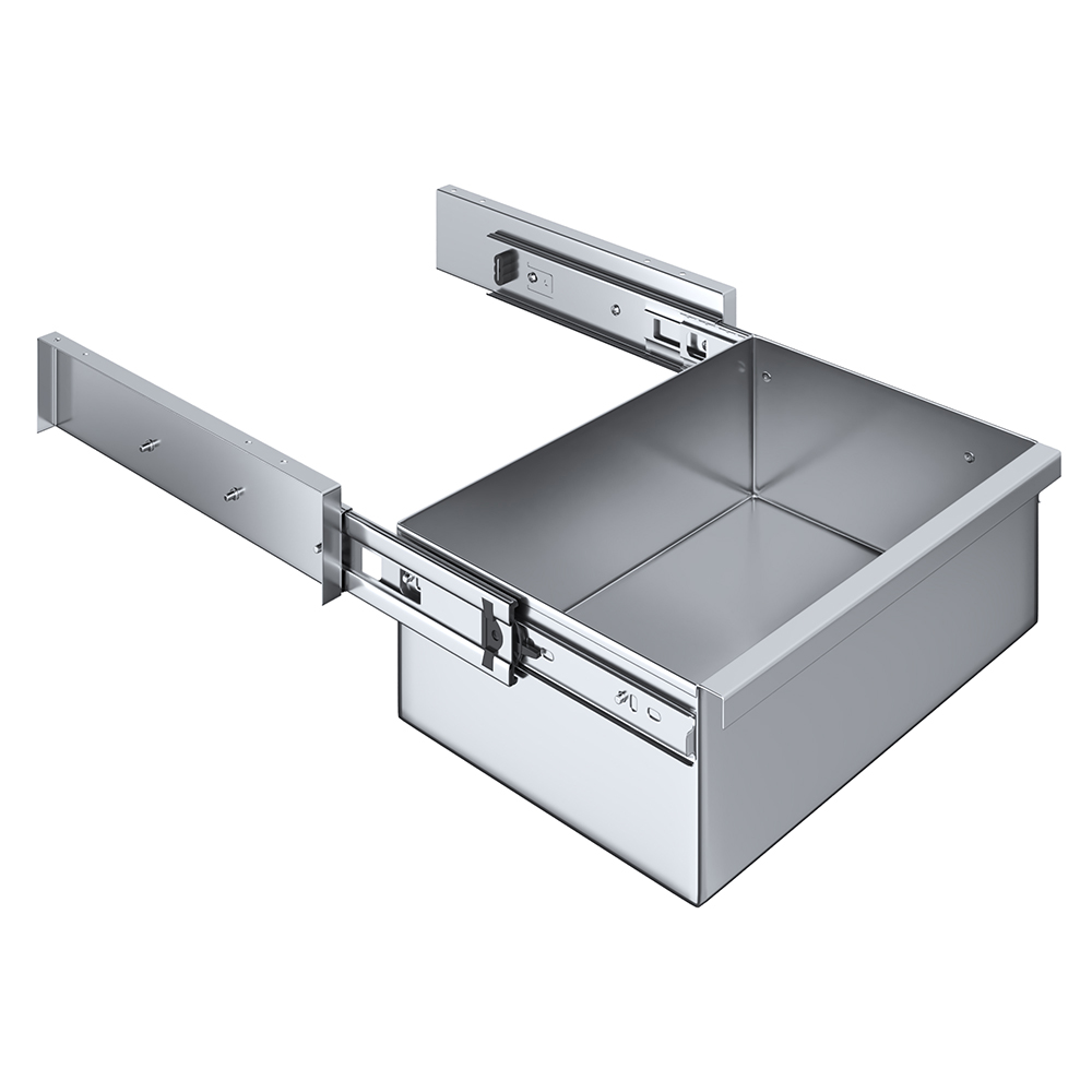 Designed with both functionality and aesthetics in mind, this stainless steel drawer boasts a sleek and modern appearance that complements any professional setting. The polished finish not only adds a touch of sophistication to your workspace but also makes cleaning and maintenance a breeze. The smooth surface can be quickly wiped down, helping you maintain a hygienic and tidy environment.