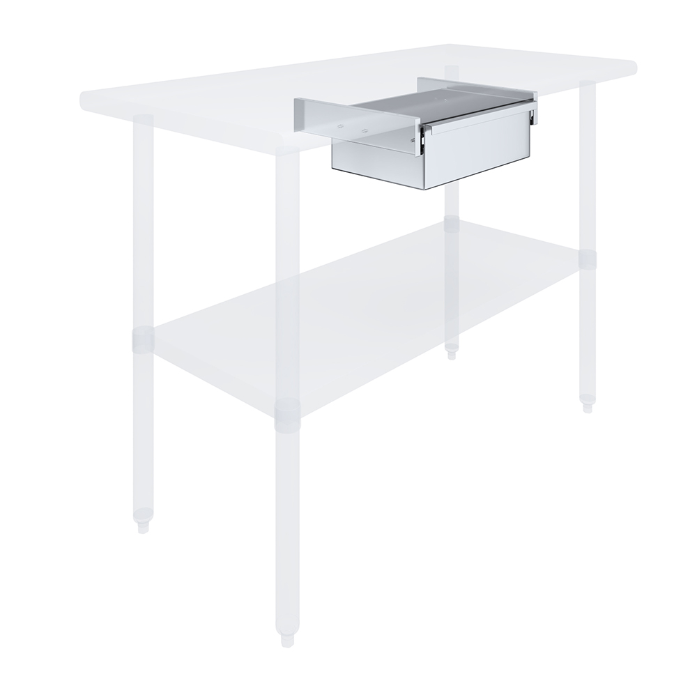 Installation is straightforward, with all necessary mounting hardware included, allowing for quick and easy setup. Whether you’re looking to add storage to a worktable, prep station, or any other work surface, this drawer integrates seamlessly, enhancing the overall functionality of your workspace.