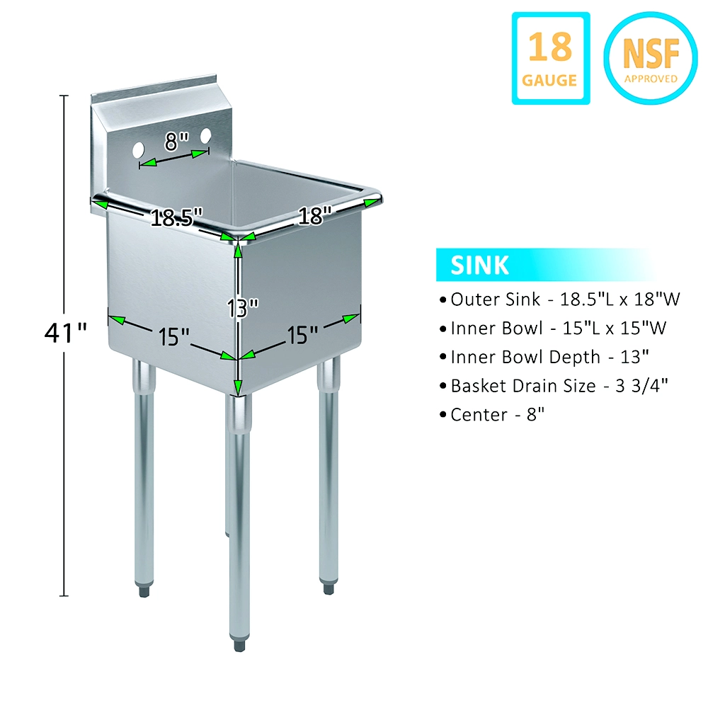 Optimize your workspace with the 15″ x 15″ One-Compartment Stainless Steel Prep & Utility Sink, a compact and versatile solution for various cleaning and prep tasks. Crafted from 18GA/304 stainless steel, this sink is designed to resist corrosion and stains, ensuring long-lasting durability in both residential and commercial settings such as kitchens, laundry rooms, and workshops.
