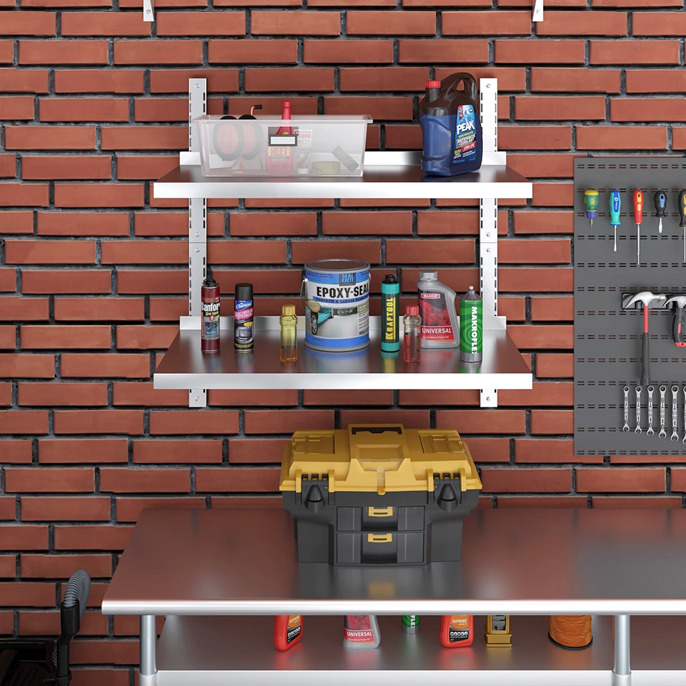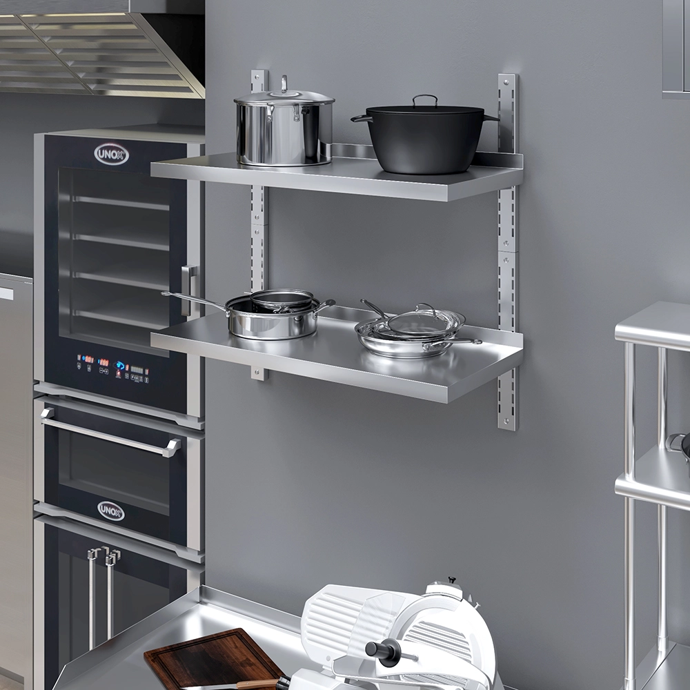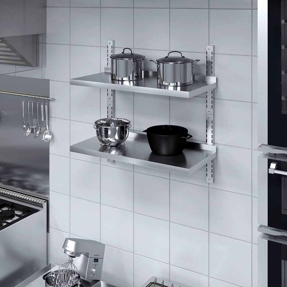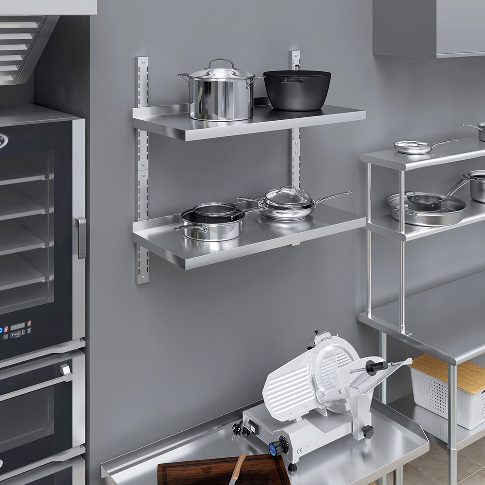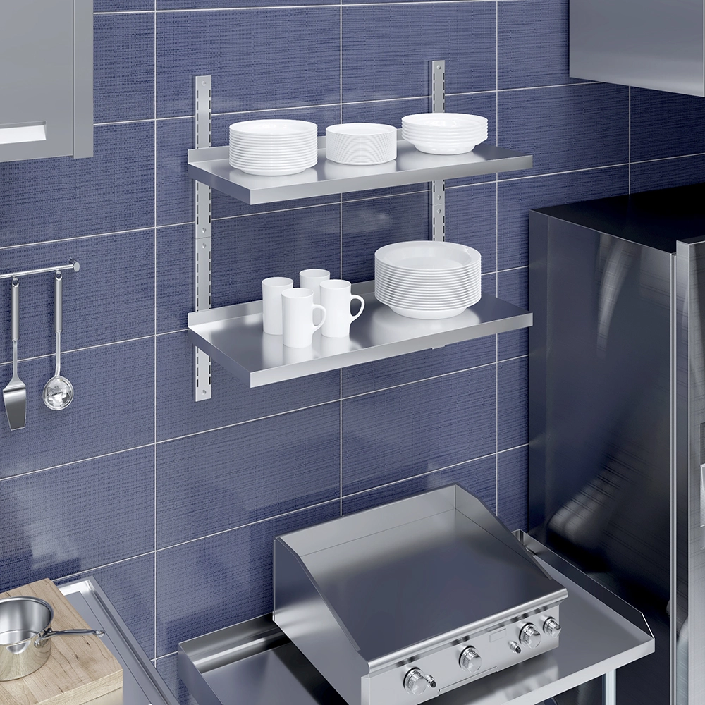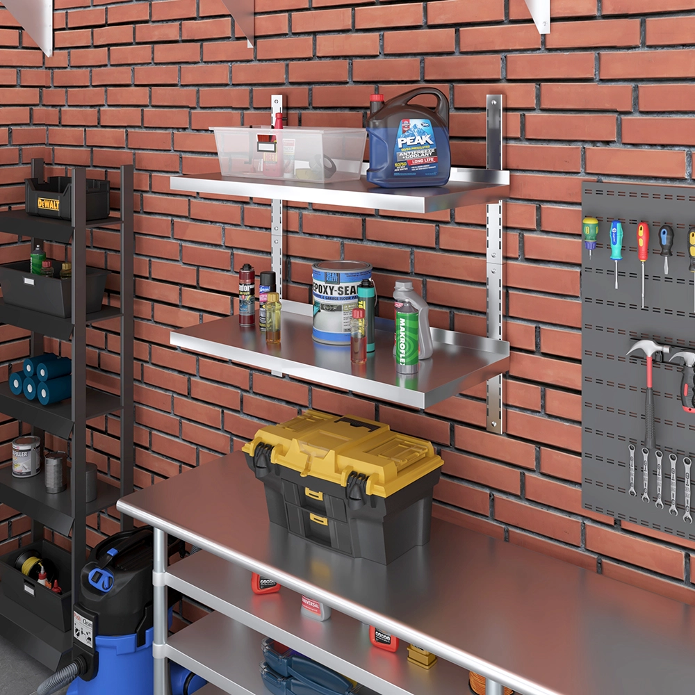 Easy to install, this wall-mounted shelf comes with all the necessary hardware for secure attachment, ensuring stability and peace of mind. Its sleek, modern appearance features clean lines and a polished finish that blends seamlessly into any environment, from contemporary kitchens to industrial-style workshops. The open design allows for easy visibility and access to items, further enhancing convenience and efficiency.