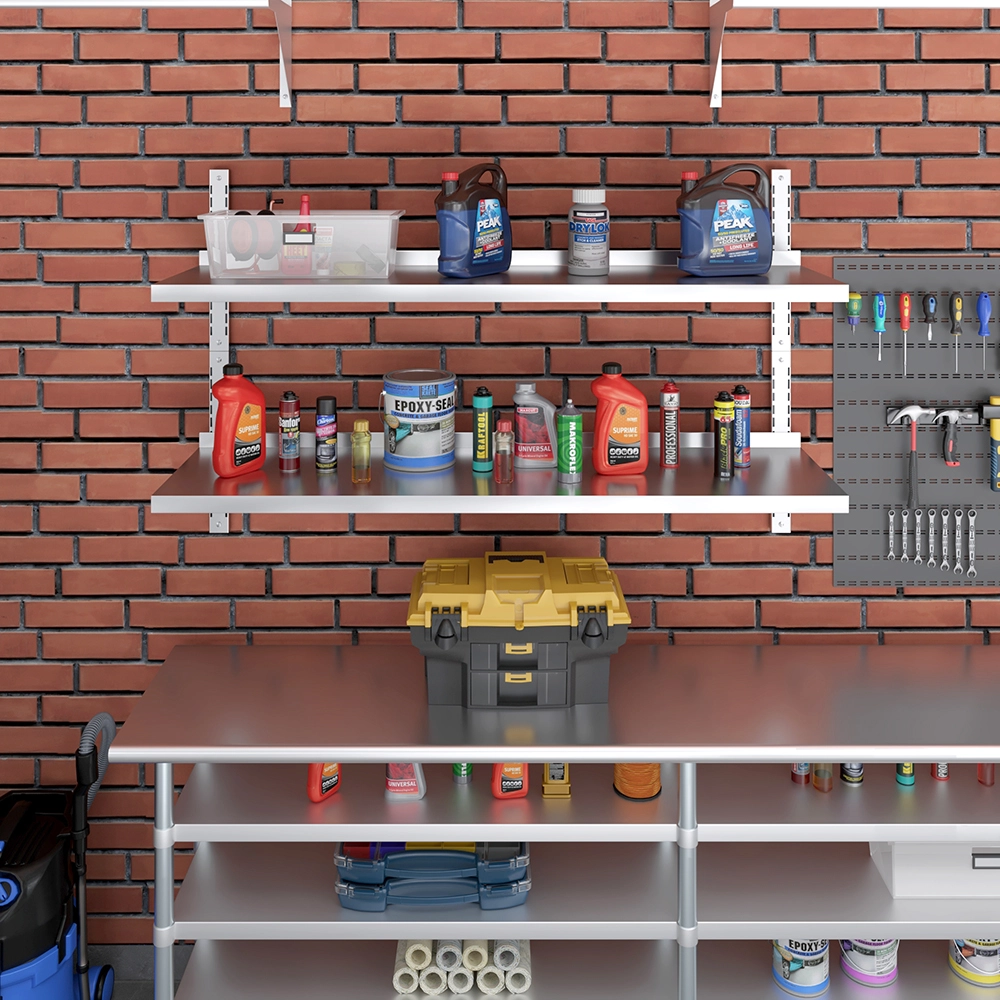 Upgrade your storage with the 16 in. x 60 in. Two-Tier Metal Wall Mount Shelf. Combining durability, versatility, and a modern aesthetic, it’s the perfect addition to any space where efficient organization and style are a priority.