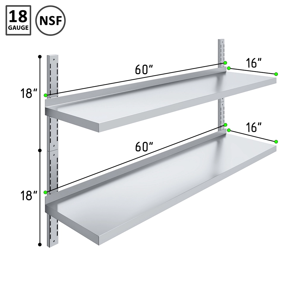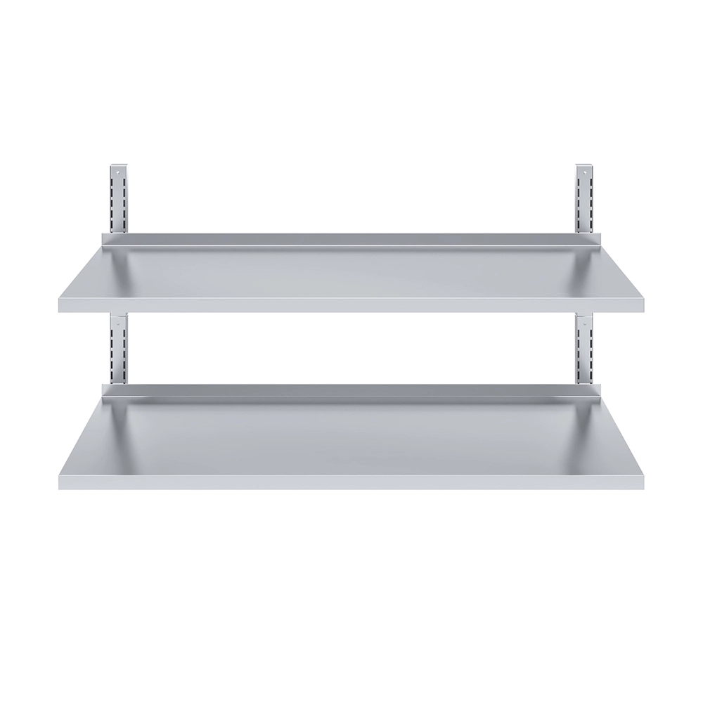 Enhance your organization and save space with the 16 in. x 60 in. Two-Tier Metal Wall Mount Shelf. Designed for durability and functionality, this sturdy metal shelf is ideal for a variety of settings, including kitchens, workshops, offices, and storage rooms. Its robust construction ensures reliable support for tools, supplies, or decorative items, making it a versatile solution for both residential and commercial use.